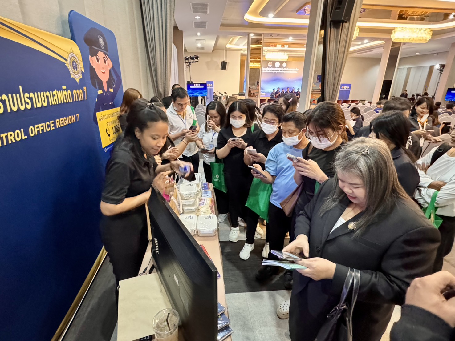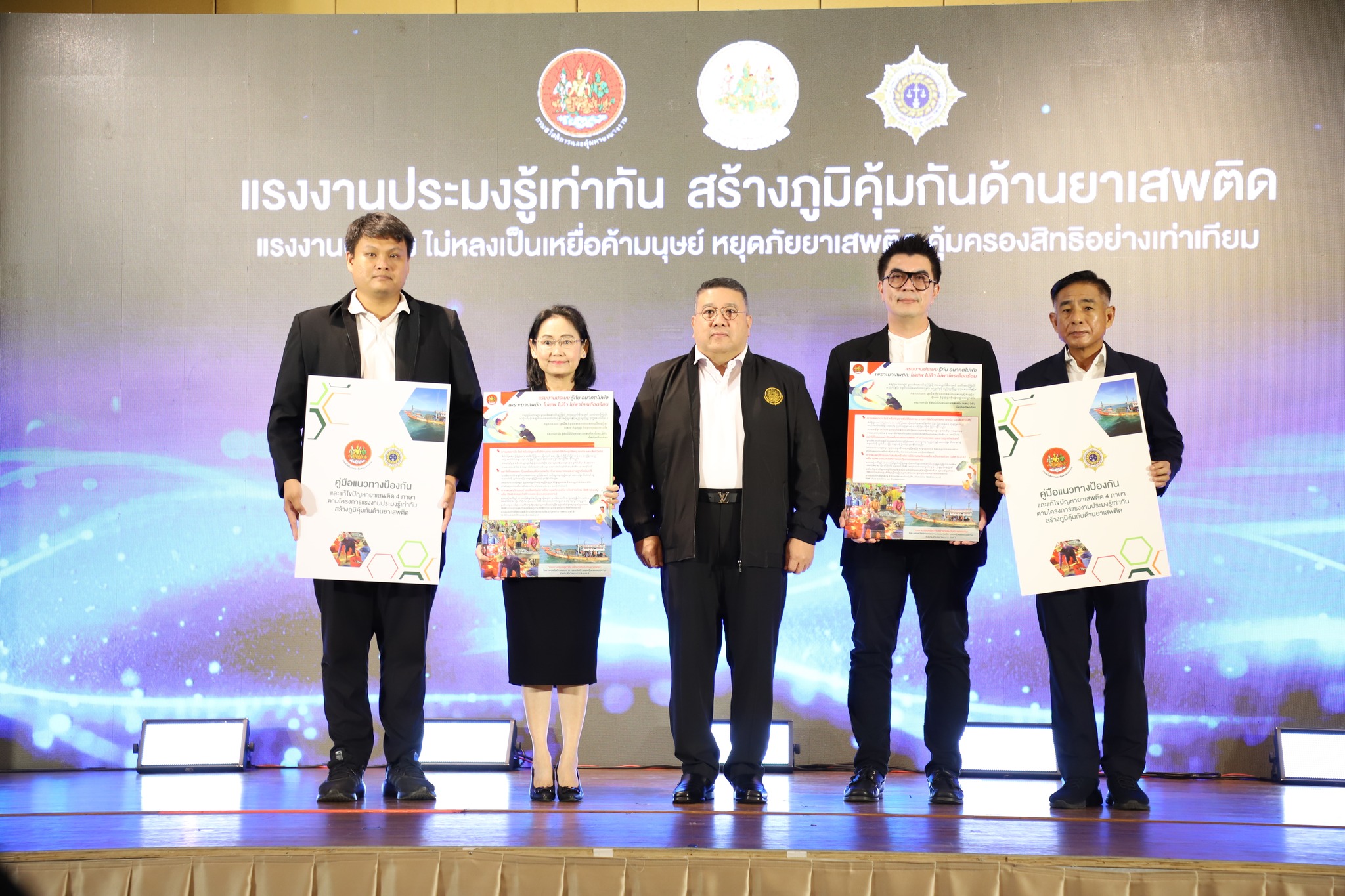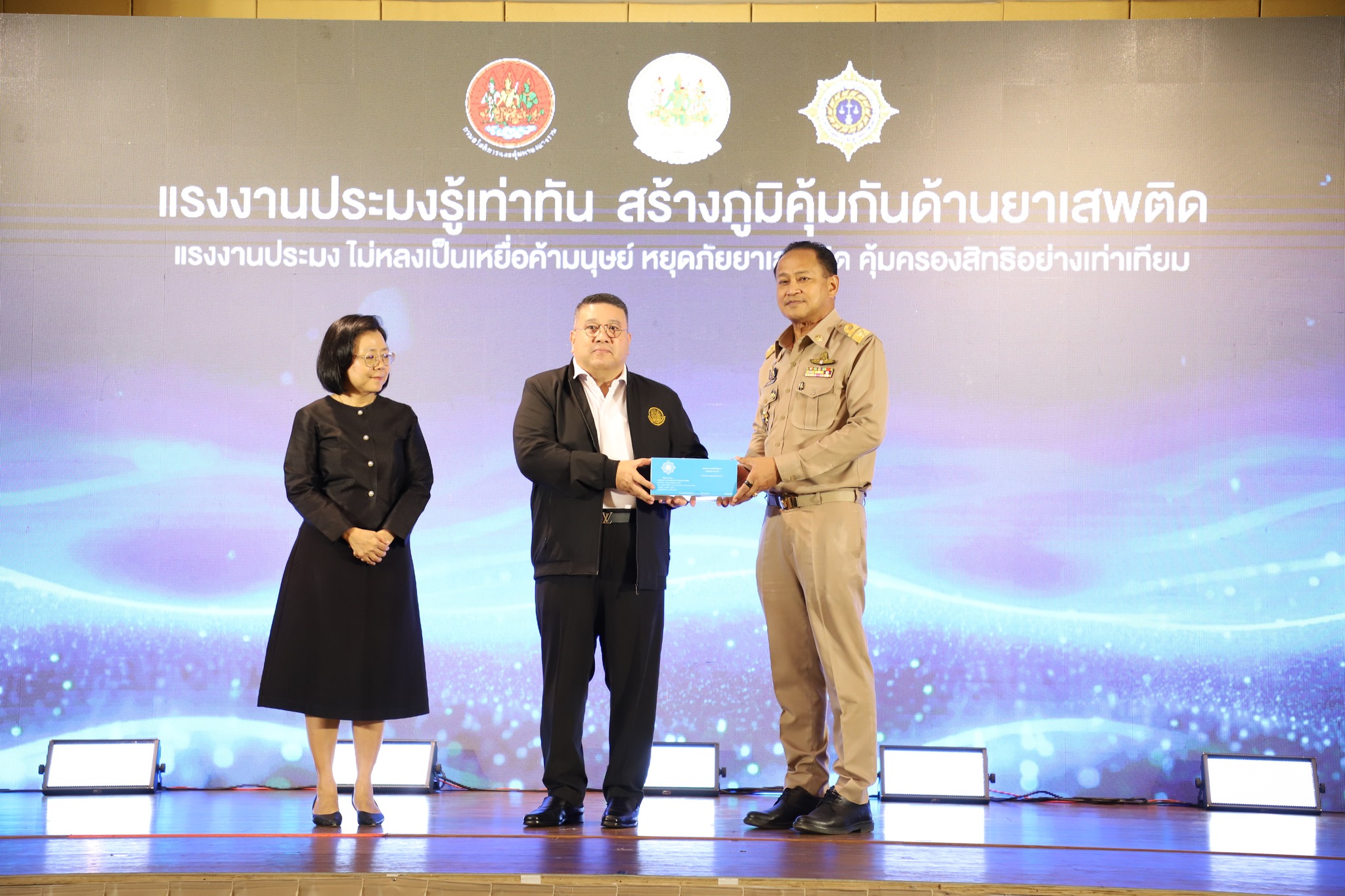 วันที่ 27 ตุลาคม 2568 ผอ.ปปส.ภ.7 มอบหมายให้ นายนพรัตน์ ไวอัมภา ผู้อำนวยการส่วนประสานพื้นที่ และคณะ เข้าร่วมพิธีเปิดโครงการ “แรงงานประมงรู้เท่าทัน สร้างภูมิคุ้มกันด้านยาเสพติด” โดยนางสาวตรีนุช เทียนทอง รัฐมนตรีว่าการกระทรวงแรงงาน ได้มอบหมายให้ พันตำรวจโท วรรณพงษ์ คชรักษ์ ปลัดกระทรวงแรงงาน เป็นประธานในพิธีเปิด พร้อมด้วย เรือเอกสาโรจน์ คมคาย อธิบดีกรมสวัสดิการและคุ้มครองแรงงาน นางปะภาสี คัยนันท์ ผู้อำนวยสำนักพัฒนาการป้องกันและแก้ไขปัญหายาเสพติด สำนักงาน ป.ป.ส. หัวหน้าหน่วยงานในสังกัดกระทรวงแรงงาน ผู้บริหารกรม นายจ้าง ลูกจ้าง เจ้าของสถานประกอบกิจการประมง หน่วยงานภาคีเครือข่ายทั้งภาครัฐและภาคเอกชนที่เกี่ยวข้อง หัวหน้าส่วนราชการในจังหวัดสมุทรสาคร แรงงานภาคประชาชน อาสาสมัครป้องกันและแก้ไขปัญหายาเสพติดในกิจการประมง (อปส) รวมจำนวน 400 คน ณ โรงแรมแกรนด์ อินเตอร์ โฮเทล ตำบลโคกขาม อำเภอเมืองสมุทรสาคร จังหวัดสมุทรสาคร โดยมีวัตถุประสงค์เพื่อจัดกิจกรรมรณรงค์ประชาสัมพันธ์การป้องกันและแก้ไขปัญหายาเสพติดในสถานประกอบกิจการประมง (kick off) จังหวัดสมุทรสาคร และส่งเสริมความรู้การป้องกันและแก้ไขปัญหายาเสพติดให้แก่อาสาสมัครป้องกันและแก้ไขปัญหายาเสพติดในกิจการประมง (อปส) ทั้งนี้ ปปส.ภ.7 ได้ร่วมจัดนิทรรศการประชาสัมพันธ์ภารกิจของหน่วยงานและเป็นวิทยากรบรรยายในหัวข้อ “โทษ พิษภัยของสารเสพติดที่มีโอกาสใกล้ชิดกับแรงงานประมง”