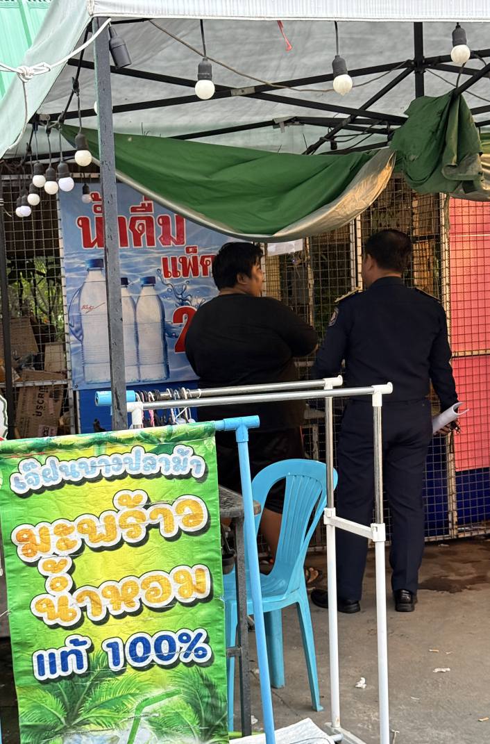การตั้งร้านในลักษณะแผงลอยในชุมชนดังกล่าว เข้าข่ายลักษณะต้องห้ามตามมาตรา 25 แห่ง พ.ร.บ.พืชกระท่อม พ.ศ. 2568 ไม่พบการติดป้ายประกาศ/แจ้งข้อห้ามขายแก่บุคคลต้องห้าม ตามมาตรา 24 แห่งพระราชบัญญัติพืชกระท่อมฯ แม้จะตรวจสอบแล้วไม่พบว่ามีการผสมน้ำต้มกระท่อมกับยาแก้ไอ และร้านอยู่ห่างจากสถานศึกษาเกิน 1,000 เมตร แต่การกระทำดังกล่าวถือเป็นการ ฝ่าฝืนข้อกำหนดตามกฎหมาย เจ้าหน้าที่จึงได้จัดทำบันทึกพฤติการณ์การกระทำความผิด เพื่อดำเนินการเสนอองค์คณะกรรมการเพื่อ ปรับเป็นพินัย ตามขั้นตอนของกฎหมายต่อไป