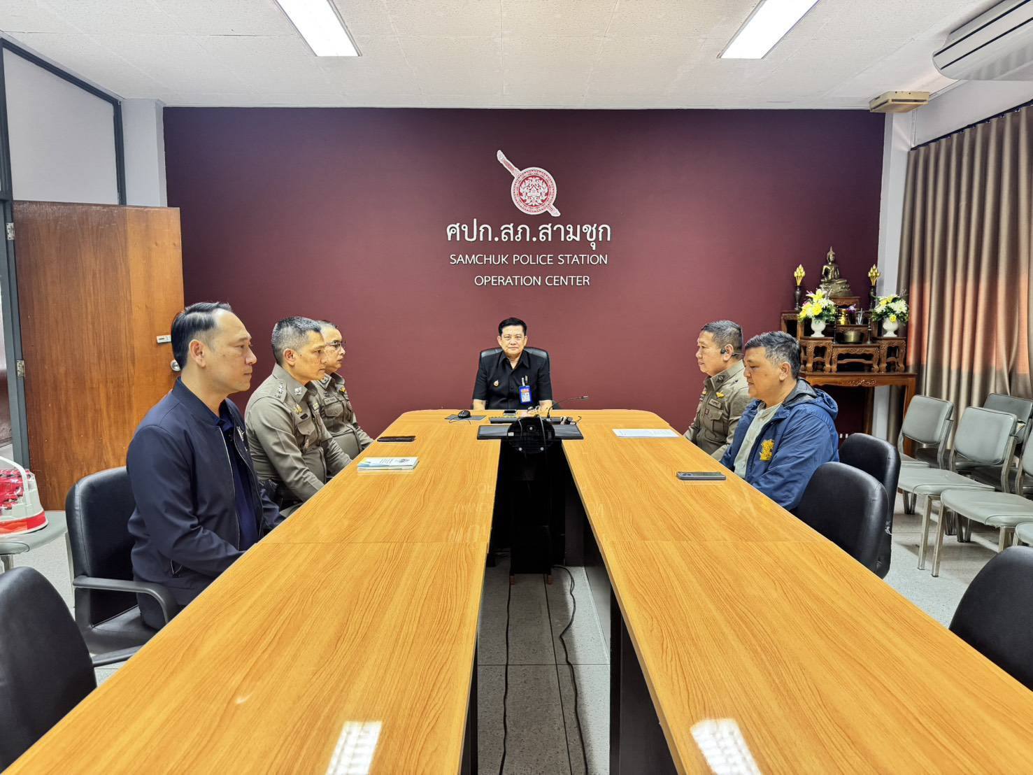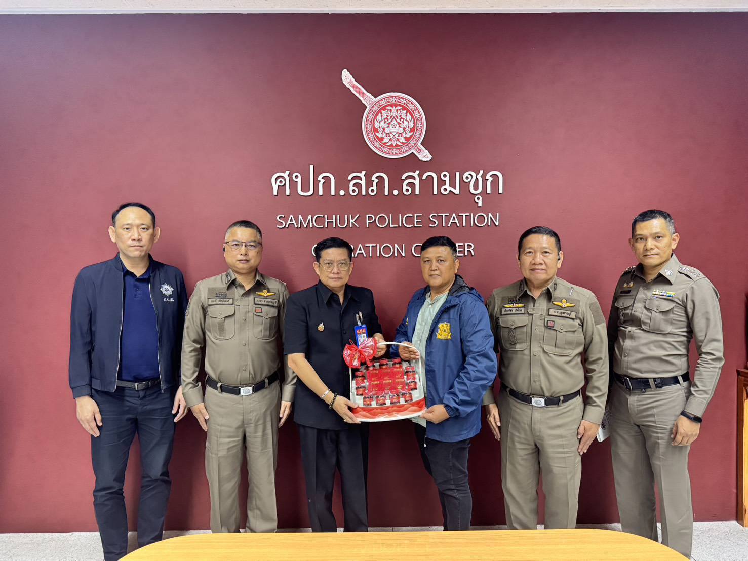 วันที่ 4 ธันวาคม 2568 เวลา 16.00 น. พันตำรวจตรี สุริยา สิงหกมล เลขาธิการ ป.ป.ส. ได้มอบหมายให้ นายทิพเมษฐ์ สังขวรรณะ ผอ.ปปส. ภาค 7 พร้อมด้วย พันตำรวจโท โอภาส วงษ์หงษ์ ผู้อำนวยการส่วนอำนวยการบังคับใช้กฎหมาย ปปส.ภ.7 และคณะ เดินทางลงพื้นที่สถานีตำรวจภูธรสามชุก จังหวัดสุพรรณบุรี เพื่อเข้าเยี่ยมและมอบกระเช้าสร้างขวัญกำลังใจแก่เจ้าหน้าที่ตำรวจ สภ.สามชุกโดยมี พันตำรวจเอก นนท์ ภักดีพันธ์ รองผู้บังคับการตำรวจภูธรจังหวัดสุพรรณบุรี, พันตำรวจเอก เจษฎา พานิชวงศ์ ผู้กำกับการ (สอบสวน) กลุ่มงานสอบสวน ภ.จว.สุพรรณบุรี, และ พันตำรวจเอก เกียรติชัย เกิดโชค ผู้กำกับการ สภ.สามชุก ให้การต้อนรับคณะได้ร่วมประชุมหารือกรณีเจ้าหน้าที่ตำรวจ สภ.สามชุก ได้ใช้รถยนต์ของทางราชการและรถยนต์ส่วนตัวเข้าสกัดจับกุมรถบรรทุกยาเสพติดที่หลบหนี เมื่อวันที่ 1 ธันวาคม 2568 และสามารถจับกุมได้พร้อมของกลางยาบ้าประมาณ 1 ล้านเม็ด ซึ่งเป็นเหตุให้รถยนต์ได้รับความเสียหาย ทาง ปปส. ภาค 7 ได้ให้คำแนะนำเกี่ยวกับการให้เงินช่วยเหลือซ่อมแซมทรัพย์สินที่ได้รับความเสียหาย และได้ให้คำแนะนำด้านการป้องกันและแก้ไขปัญหายาเสพติดในมาตรการต่างๆ ต่อมา คณะได้เดินทางไปพบ พลเมืองดีซึ่งได้รับบาดเจ็บและรถจักรยานยนต์ได้รับความเสียหาย จากเหตุการณ์ที่ได้เข้าช่วยเจ้าพนักงานตำรวจในการสกัดจับกุมผู้ต้องหาข้างต้น โดยเจ้าหน้าที่ ปปส. ภาค 7 ได้มอบเงินเยียวยาช่วยเหลือเพื่อเป็นขวัญกำลังใจให้กับพลเมืองดีดังกล่าวนอกจากนี้ ยังได้พบปะกล่าวชื่นชมและบำรุงขวัญกำลังใจแก่ ร้อยตำรวจตรี ณรงค์ สว่างศรี รองสารวัตร (ป.) สภ.สามชุก และ ดาบตำรวจ ธนวัฒน์ น้ำจันทร์ ผู้บังคับหมู่ (ป.) สภ.สามชุก เจ้าหน้าที่ตำรวจผู้ปฏิบัติหน้าที่ในการขับรถยนต์ขวางสกัดกั้นรถยนต์ผู้ต้องหาอย่างกล้าหาญทั้งนี้ ป.ป.ส. ภาค 7 จะติดตามช่วยเหลือด้านเงินเยียวยาให้กับผู้ได้รับบาดเจ็บและซ่อมแซมทรัพย์สินที่ได้รับความเสียหายต่อไป