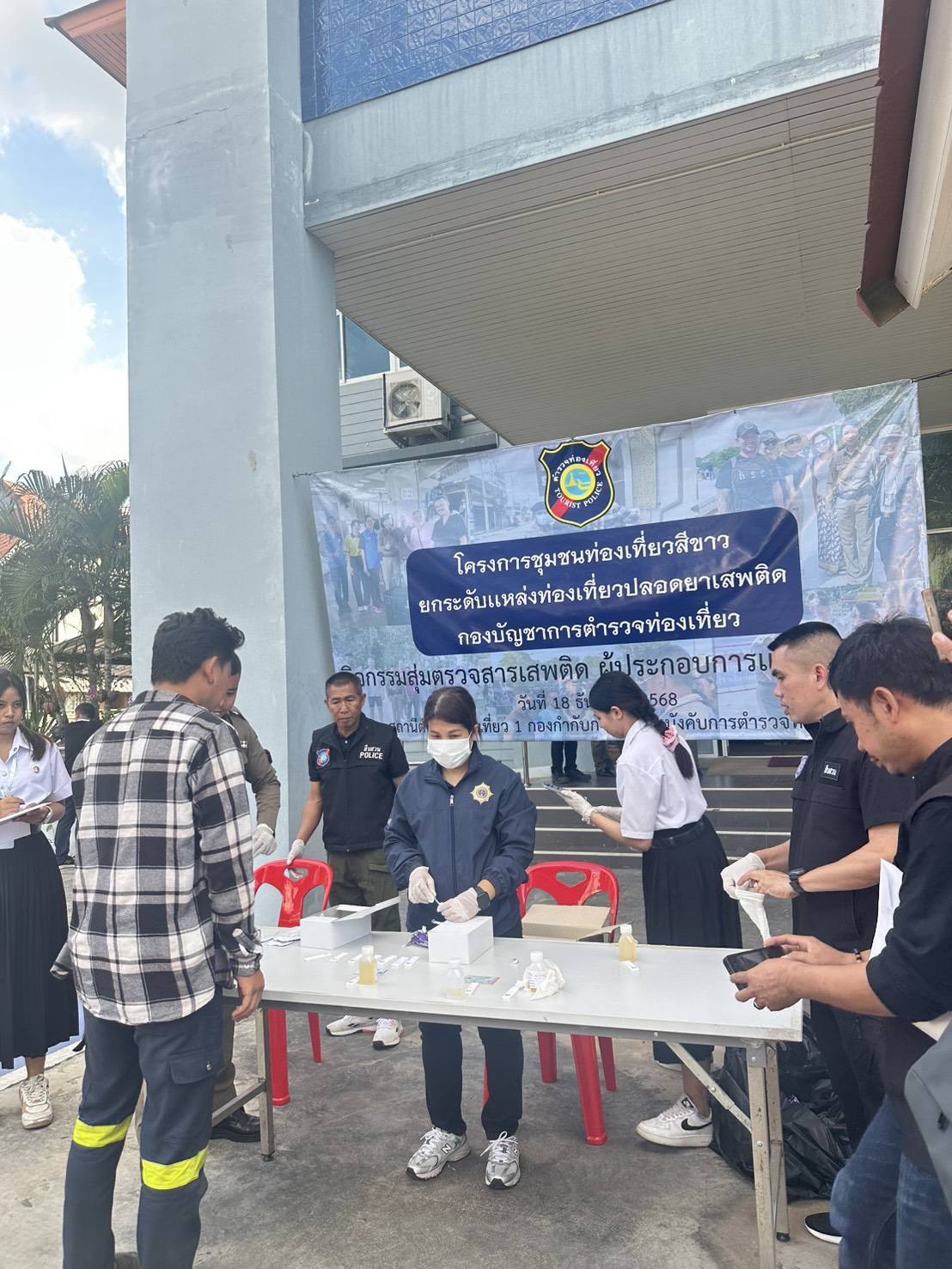 วันที่ 18 ธันวาคม 2568 เวลา 15.00 น. นายทิพเมษฐ์ สังขวรรณะ ผู้อำนวยการสำนักงาน ปปส.ภาค 7 มอบหมายให้ นางสุภาพร สมพงษ์ นักวิเคราะห์นโยบายและแผนชำนาญการ และคณะ ลงพื้นที่ปฏิบัติการเชิงรุกบูรณาการร่วมกับหน่วยงานภาคีเครือข่าย ประกอบด้วย สถานีตำรวจท่องเที่ยว 1 กก.1 บก.ทท.3, ภ.จว.กาญจนบุรี, สภ.เมืองกาญจนบุรี และตรวจคนเข้าเมืองจังหวัดกาญจนบุรี เพื่อดำเนินมาตรการสุ่มตรวจหาสารเสพติดในปัสสาวะกับกลุ่มบุคคลที่เกี่ยวข้องในวงจรการท่องเที่ยว