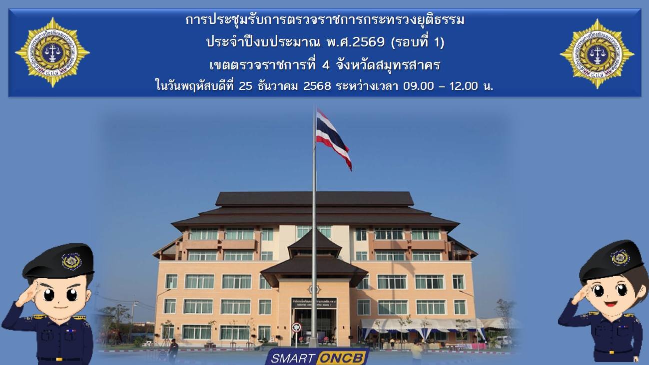 วันที่ 25 ธันวาคม 2568 นายทิพเมษฐ์ สังขวรรณะ ผอ.ปปส.ภาค 7 มอบหมายให้ นางสาวสุภาภรณ์ สิงห์เทียน นักสืบสวนสอบสวนชำนาญการ เป็นผู้แทนหน่วยงาน เข้าร่วมประชุมรับการตรวจราชการกระทรวงยุติธรรม กรณีปกติ ประจำปีงบประมาณ พ.ศ. 2569 (รอบที่ 1) ผ่านระบบประชุมทางไกล (Cisco Webex Meeting) โดยมี นางสาวธารินี แสงสว่าง ผู้ตรวจราชการกระทรวงยุติธรรม เป็นประธานในการตรวจราชการฯ ในพื้นที่เขตตรวจราชการที่ 4 จังหวัดสมุทรสาคร