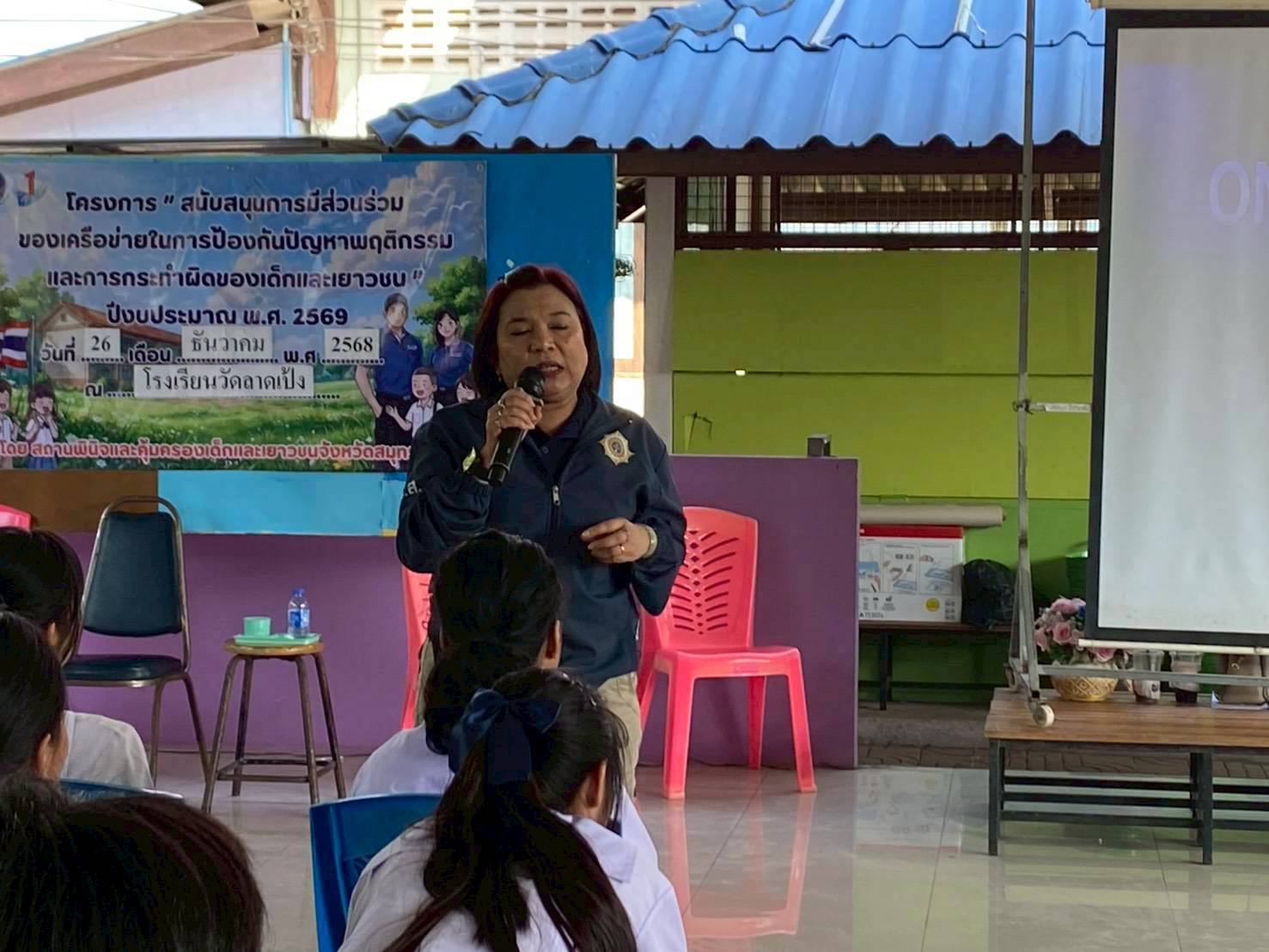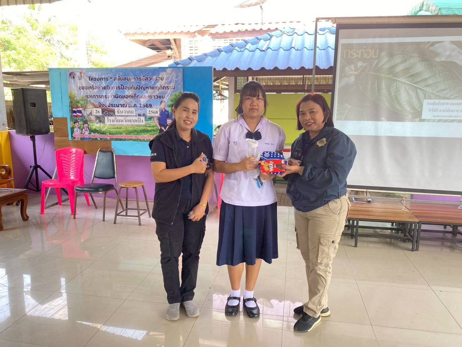 วันศุกร์ที่ 26 ธันวาคม 2568 เวลา 10.30 น. นายทิพเมษฐ์ สังขวรรณะ ผู้อำนวยการสำนักงานป้องกันและปราบปรามยาเสพติด ภาค 7 (ผมอบหมายให้ทีมวิทยากร ประกอบด้วย นางสาวทิพย์วารี ชมชื่น นักวิเคราะห์นโยบายและแผนชำนาญการ และ นางสาวกรวีร์ ไพรอด นักสืบสวนสอบสวนชำนาญการ ลงพื้นที่สร้างองค์ความรู้ในหัวข้อ “การรู้เท่าทันและห่างไกลยาเสพติด” ณ โรงเรียนวัดลาดเป้ง ต.นางตะเคียน อ.เมืองสมุทรสงคราม จ.สมุทรสงครามสำหรับการจัดกิจกรรมในครั้งนี้ เป็นความร่วมมือบูรณาการระหว่างหน่วยงาน โดยมีคณะครู นักเรียน และเจ้าหน้าที่จากสถานพินิจและคุ้มครองเด็กและเยาวชนจังหวัดสมุทรสงคราม เข้าร่วมรับฟังรวม 70 คน เนื้อหาการบรรยายมุ่งเน้นการเสริมสร้างทักษะชีวิต (Life Skills) ให้เยาวชนมีความเข้มแข็งทางความคิด สามารถวิเคราะห์และปฏิเสธปัจจัยเสี่ยงต่าง ๆ ได้อย่างถูกต้อง เพื่อลดโอกาสการเข้าไปเกี่ยวข้องกับยาเสพติดและป้องกันปัญหาพฤติกรรมที่ไม่เหมาะสม อันจะเป็นการวางรากฐานกลไกการเฝ้าระวังที่เข้มแข็งภายในสถานศึกษาอย่างยั่งยืน ในโอกาสนี้ ปปส.ภ.7 ได้ร่วมสนับสนุนกิจกรรมเชิงสร้างสรรค์ด้วยการมอบอุปกรณ์กีฬาและสื่อรณรงค์ประชาสัมพันธ์ให้แก่ทางโรงเรียน เพื่อส่งเสริมให้เยาวชนใช้เวลาว่างให้เกิดประโยชน์ผ่านการออกกำลังกาย เสริมสร้างสุขภาพกายและใจที่แข็งแรง พร้อมเป็นกำลังสำคัญในการสร้างสังคมที่ปลอดภัยจากยาเสพติดสืบไป