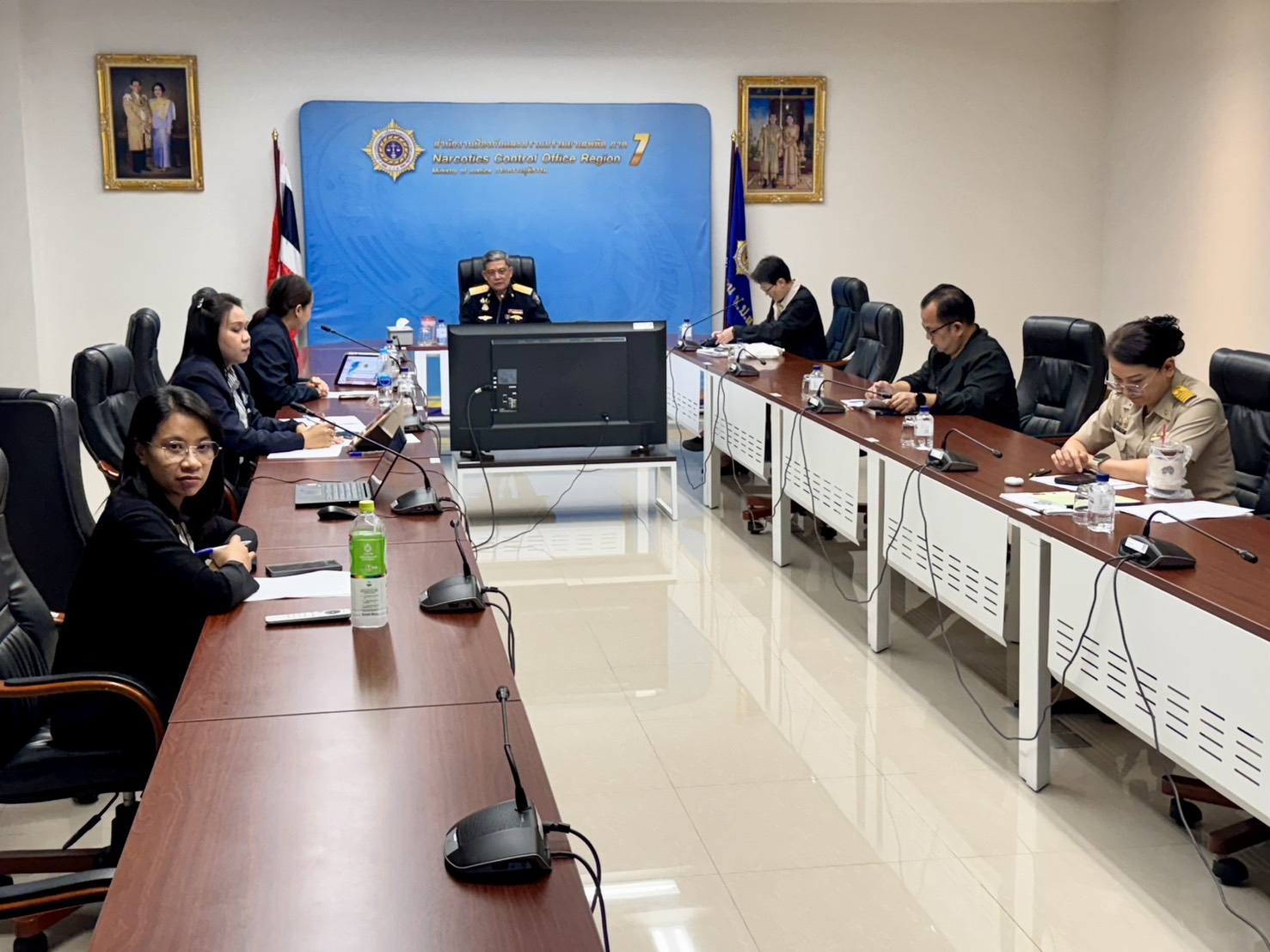วันจันทร์ที่ 9 มีนาคม 2569 เวลา 13.30 – 15.00 น. ปปส.ภาค 7 จัดประชุมหารือแนวทางการขับเคลื่อนแผนปฏิบัติการหน่วยบัญชาการสกัดกั้นและปราบปรามยาเสพติด สารตั้งต้น และเคมีภัณฑ์พื้นที่ชายแดนภาคตะวันตก (นบ.ยส.17) ณ ห้องประชุม War Room ชั้น 2 สำนักงาน ปปส.ภาค 7 จังหวัดสมุทรสาคร และผ่านระบบประชุมทางไกล Cisco Webex Meetings โดยมี นายทิพเมษฐ์ สังขวรรณะ ผู้อำนวยการสำนักงาน ปปส.ภาค 7 เป็นประธานการประชุม พร้อมด้วยผู้แทนหน่วยงานที่เกี่ยวข้อง ประกอบด้วย ผู้ช่วยเลขานุการ นบ.ยส.17 ตำรวจภูธรจังหวัดกาญจนบุรี ฝ่ายเลขานุการ ศอ.ปส.จ.กาญจนบุรี ผอ.ศป.ปส.อ. และผู้แทน ศป.ปส.อ. ในพื้นที่เป้าหมาย 5 อำเภอชายแดน เข้าร่วมประชุมการประชุมครั้งนี้มีวัตถุประสงค์เพื่อติดตามผลการดำเนินงาน รับทราบสถานการณ์ยาเสพติดในพื้นที่ชายแดนจังหวัดกาญจนบุรี รวมทั้งหารือปัญหาอุปสรรคและแนวทางการขับเคลื่อนภารกิจร่วมกับหน่วยงานในพื้นที่ เพื่อเตรียมปรับแผนปฏิบัติการในช่วง 6 เดือนหลังของปีงบประมาณ พ.ศ. 2569 ให้สอดคล้องกับสถานการณ์ที่ประชุมได้ติดตามผลการดำเนินงานตามตัวชี้วัดของ นบ.ยส.17 จำนวน 3 ตัวชี้วัดสำคัญ ได้แก่ การสกัดกั้นยาเสพติดตามแนวชายแดน การดำเนินการต่อเครือข่ายผู้กระทำความผิด และการมีส่วนร่วมของภาคประชาชนในการเฝ้าระวังปัญหายาเสพติดในพื้นที่หมู่บ้านชายแดน พร้อมทั้งรับทราบผลการใช้จ่ายงบประมาณด้านการป้องกันและแก้ไขปัญหายาเสพติด และแนวทางการจัดสรรบำเหน็จความชอบกรณีพิเศษแก่เจ้าหน้าที่ผู้ปฏิบัติงานด้านยาเสพติดนอกจากนี้ ที่ประชุมได้ร่วมกันหารือแนวทางยกระดับการสกัดกั้นและปราบปรามยาเสพติดในพื้นที่ชายแดน รวมถึงการเตรียมแผนปฏิบัติการในระยะต่อไป การพัฒนาศักยภาพเจ้าหน้าที่ และการบูรณาการความร่วมมือของหน่วยงานที่เกี่ยวข้อง เพื่อเพิ่มประสิทธิภาพการป้องกันและแก้ไขปัญหายาเสพติดในพื้นที่อย่างต่อเนื่อง