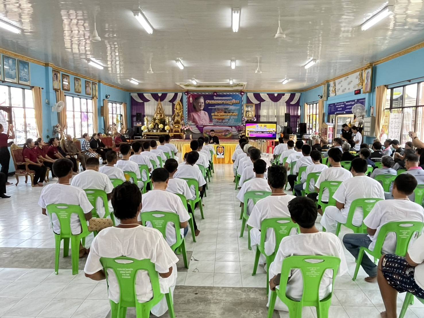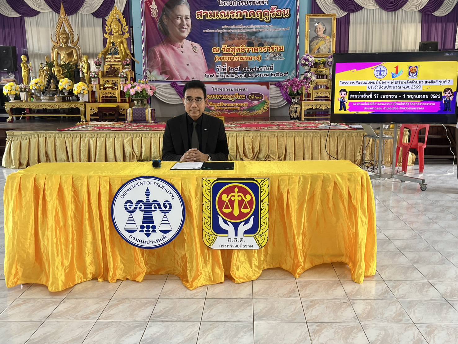 วันที่ 28 เมษายน 2569 เวลา 13.00 น. นายทิพเมษฐ์ สังขวรรณะ ผู้อำนวยการสำนักงาน ปปส.ภาค 7 มอบหมายให้ นางสาววิจิตรา ศรีดี นักสืบสวนสอบสวนชำนาญการ และนางสาวสุธาสินี กลิ่นน้อย นักวิเคราะห์นโยบายและแผนชำนาญการ ผู้ประสานจังหวัดสมุทรสาคร เข้าร่วมเป็นเกียรติในพิธีเปิดโครงการ “สานสัมพันธ์ น้อง – พี่ เสริมพลังต้านยาเสพติด” รุ่นที่ 2 ประจำปีงบประมาณ พ.ศ. 2569 ณ สถานที่เพื่อให้การสงเคราะห์ (บ้านกึ่งวิถี) วัดสุทธิวาตวราราม จังหวัดสมุทรสาครโครงการดังกล่าวจัดโดยสำนักงานคุมประพฤติจังหวัดสมุทรสาคร มีกลุ่มเป้าหมาย 40 คน ระยะเวลา 5 วัน ระหว่างวันที่ 27 เมษายน – 1 พฤษภาคม 2569 โดยมี นายภูริวิชญ์ ยาหิรัญ ผู้พิพากษาหัวหน้าศาลจังหวัดสมุทรสาคร เป็นประธานในพิธีเปิด และนายวิโรจน์ บัวเงิน ผู้อำนวยการสำนักงานคุมประพฤติจังหวัดสมุทรสาคร กล่าวรายงาน พร้อมด้วยผู้แทนหน่วยงานภาครัฐในพื้นที่เข้าร่วมการดำเนินโครงการมุ่งเน้นเสริมสร้างพลังใจและทักษะชีวิตให้ผู้เข้าร่วมได้สำรวจตนเอง เห็นคุณค่าในตนเอง และพัฒนาทักษะการตัดสินใจและการแก้ไขปัญหา เพื่อสร้างแรงจูงใจในการเลิกยาเสพติดอย่างต่อเนื่อง ควบคู่กับการดูแลช่วยเหลือจากภาคีเครือข่ายในพื้นที่ อันจะนำไปสู่การลดการกระทำผิดซ้ำ และคืนคนดีสู่สังคมทั้งนี้ ปปส.ภาค 7 ได้ประชาสัมพันธ์แนวทางการขอรับการสนับสนุนทุนประกอบอาชีพสำหรับผู้ผ่านการบำบัดยาเสพติดจากกระบวนการยุติธรรม ประจำปี 2569 เพื่อสร้างโอกาสในการประกอบอาชีพสุจริต มีรายได้เลี้ยงชีพ และยกระดับคุณภาพชีวิตอย่างยั่งยืน