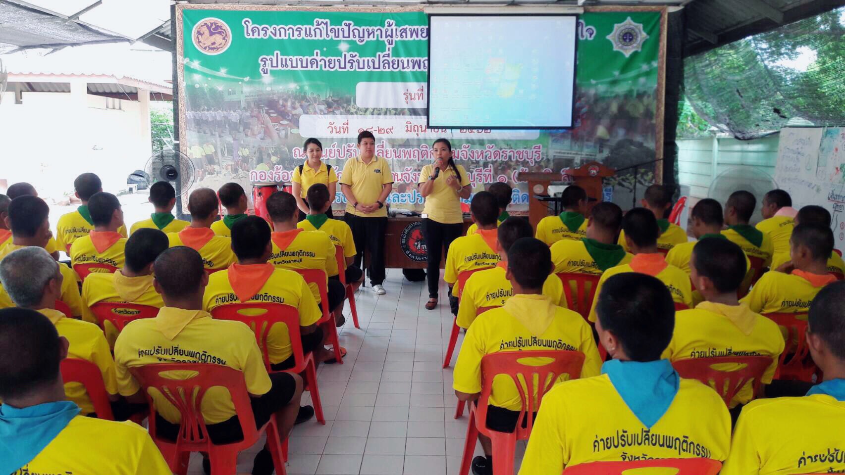 วันที่ 26 มิถุนายน 2562 เวลา 13.00 น. ผอ.ปปส.ภ.7 มอบหมายให้นางสาวทิพย์วารี ชมชื่น นักวิเคราะห์นโยบายและเเผนชำนาญการ และคณะ เข้าตรวจเยี่ยมและให้กำลังใจแก่ผู้เข้ารับการบำบัดฟื้นฟูยาเสพติด ในโครงการแก้ไขปัญหาผู้เสพยาเสพติดระบบสมัครใจ รูปแบบค่ายปรับเปลี่ยนพฤติกรรม จังหวัดราชบุรี รุ่น 5 ประจำปีงบประมาณ 2562 ณ ศูยน์ปรับเปลี่ยนพฤติกรรมจังหวัดราชบุรี (กองร้อยอาสารักษาดินแดนจังหวัดราชบุรี ที่ 1) ตำบลอ่างทอง อำเภอเมือง จังหวัดราชบุรี