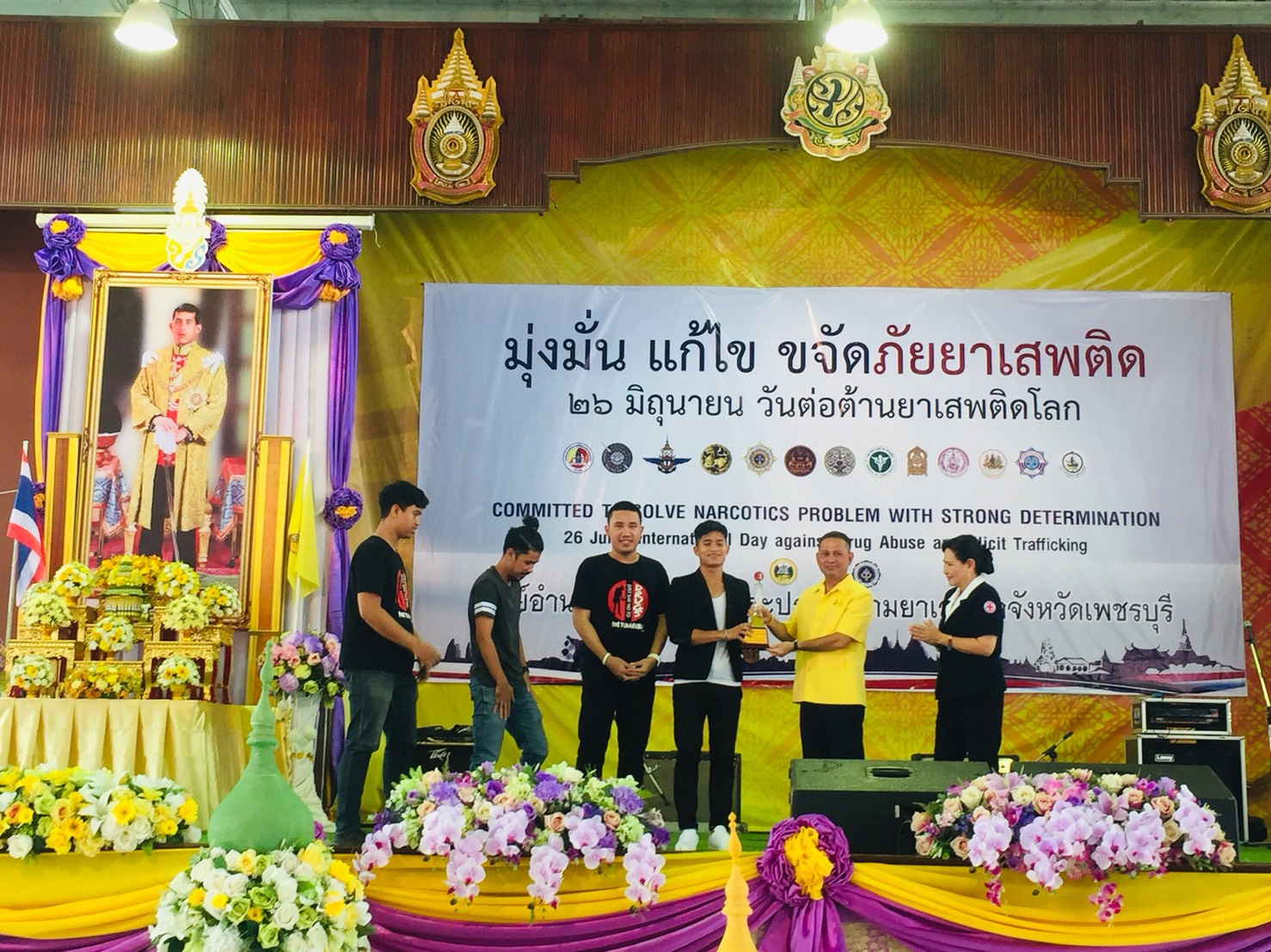 ปปส.ภ.7 และคณะ เข้าร่วมกิจกรรมงานวันต่อต้านยาเสพติดจังหวัดเพชรบุรี ประจำปี 2562 ณ หอประชุมวิทยาลัยอาชีวศึกษาจังหวัดเพชรบุรี โดยมี นายณัฐวุฒิ เพ็ชรพรหมศร รองผู้ว่าราชการจังหวัดเพชรบุรี เป็นประธานในพิธี มีผู้เข้าร่วมงานประกอบด้วย หัวหน้าส่วนราชการ ผู้แทนหน่วยงานภาครัฐ ภาคเอกชน นักเรียน นักศึกษา ภาคประชาชน รวมทั้งสิ้น 1,000 คน กิจกรรมภายในงานประกอบด้วย