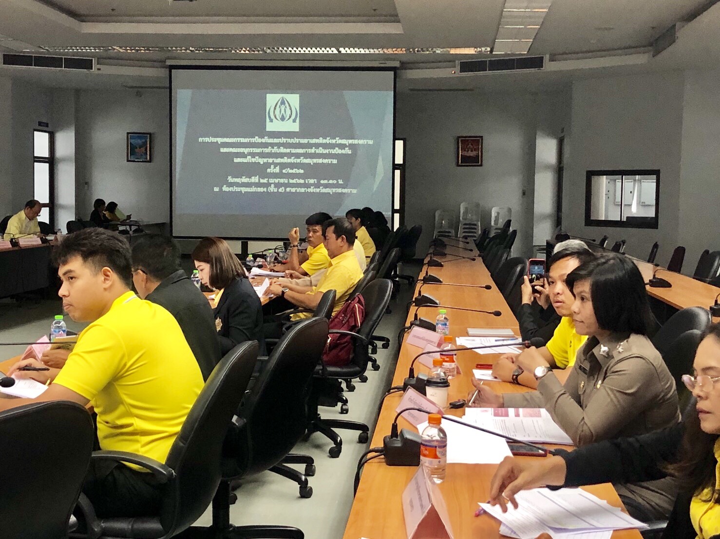 วันที่ 25 เมษายน 2562 เวลา 13.30 น. ปปส.ภ.7 และคณะ เข้าร่วมการประชุมคณะกรรมการศูนย์อำนวยการป้องกันและปราบปรามยาเสพติดจังหวัดสมุทรสงคราม และคณะอนุกรรมการกำกับติดตามผลการดำเนินงานป้องกันและแก้ไขปัญหายาเสพติดจังหวัดสมุทรสงคราม ครั้งที่ 4/2562 ณ ห้องประชุมแม่กลอง ชั้น 5 ศาลากลางจังหวัดสมุทรสงคราม โดยมีนายประจินต์ ธารศิริสิน รองผู้ว่าราชการจังหวัดสมุทรสงคราม เป็นประธานการประชุม พร้อมด้วยหัวหน้าส่วนราชการในพื้นที่ รวมจำนวน 50 คน
