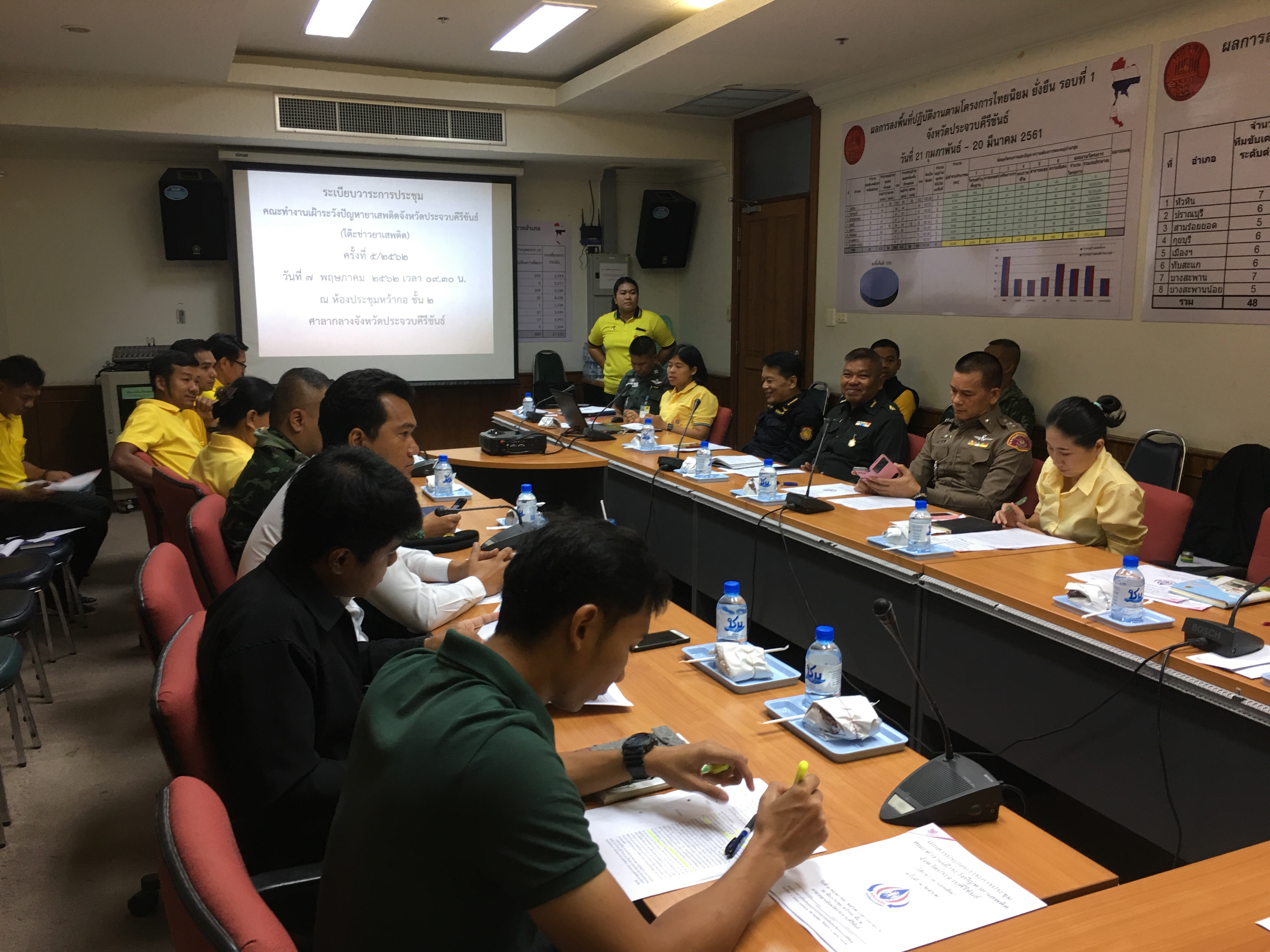 เมื่อวันอังคารที่ ๗ พฤษภาคม ๒๕๖๒ เวลา ๐๙.๓๐ น. ปปส.ภ.๗ และคณะ เข้าร่วมประชุมโต๊ะข่าวยาเสพติด ครั้งที่ ๕/๒๕๖๒ ณ ห้องประชุมหว้ากอ ชั้น ๒ ศาลากลางจังหวัดประจวบคีรีขันธ์ อำเภอเมือง จังหวัดประจวบคีรีขันธ์ เพื่อติดตามสถานการณ์การแพร่ระบาดยาเสพติดของจังหวัดประจวบคีรีขันธ์ และแลกเปลี่ยนข่าวสารการเฝ้าระวังปัญหายาเสพติดระหว่างหน่วยปฏิบัติที่เกี่ยวข้องในพื้นที่ ประจำเดือนเมษายน ๒๕๖๒ โดยมี นายนรินทร์ ทรงพินิพิฐกุล ปลัดจังหวัดประจวบคีรีขันธ์ เป็นประธานการประชุม พร้อมด้วยผู้แทนจากส่วนราชการที่เกี่ยวข้อง รวมจำนวน 30คน