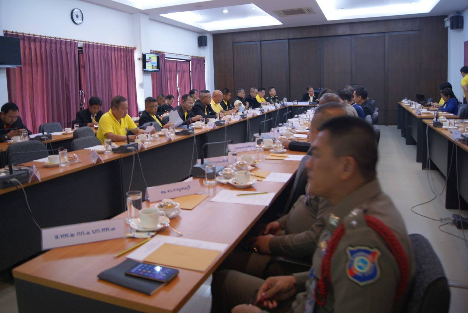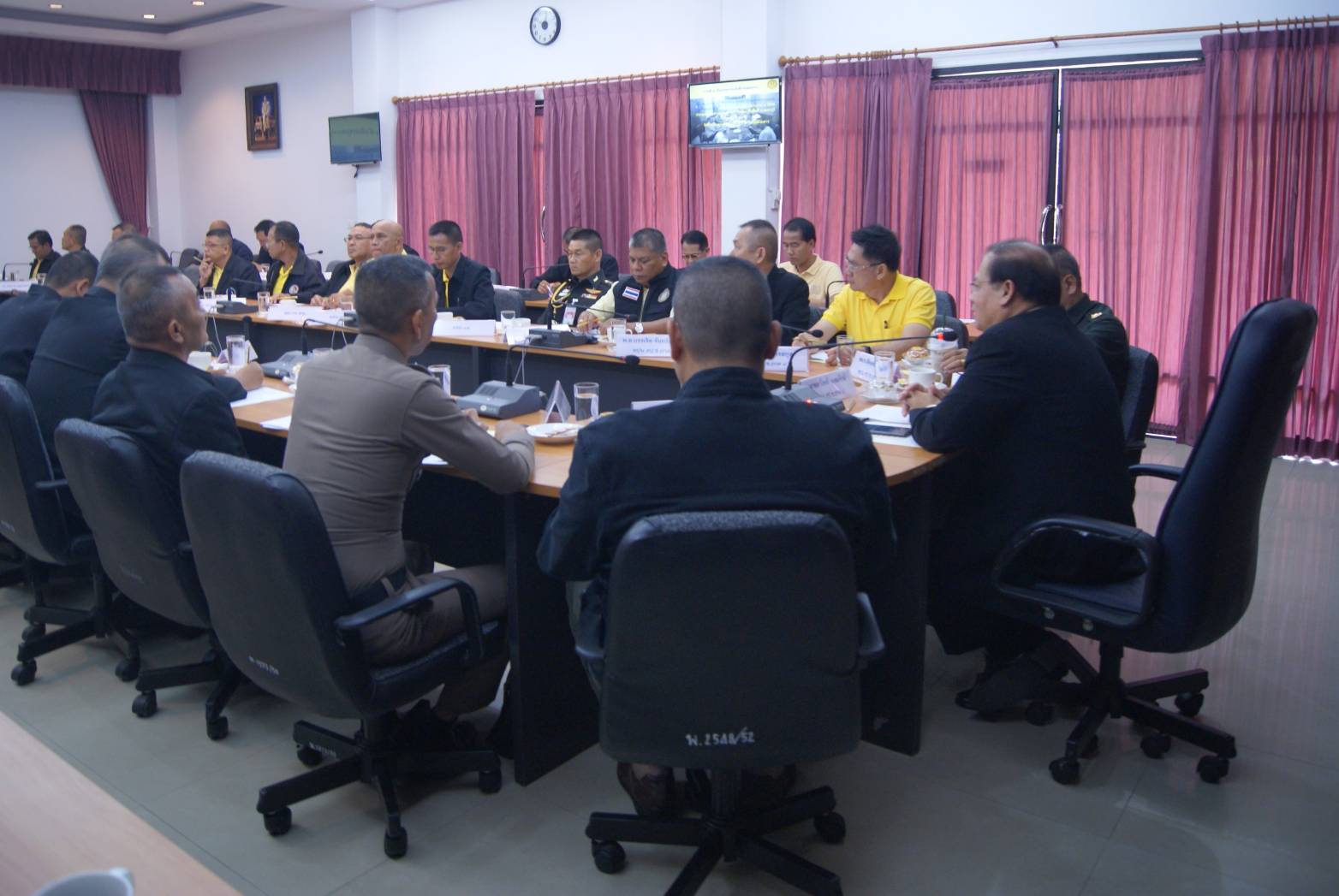 โดยมี นายสาโรจย์ ธรรมรัตน์ ผอ.ศป.ข.ภ.4 ทำหน้าที่เป็นประธานในที่ประชุม พร้อมทั้งร่วมหารือด้านการข่าว สภาพปัญหาในพื้นที่ภาคตะวันตกและความมั่นคง กับหน่วยงานที่เกี่ยวข้อง รวมจำนวนทั้งสิ้น 55 นาย