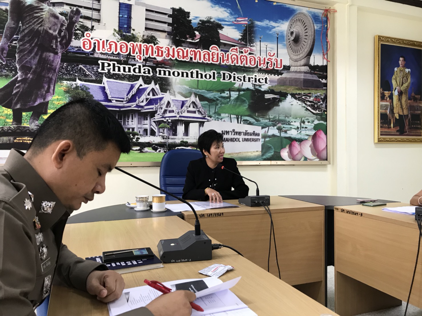 และได้มีการประชุมบรรยายจากผู้แทนของ ศป.ปส.อ.พุทธมลฑล นำเสนอสถานการณ์ปัญหายาเสพติดและผลการดำเนินงานตามนโยบาย ด้านต่างๆ และปัญหาอุปสรรคการทำงาน