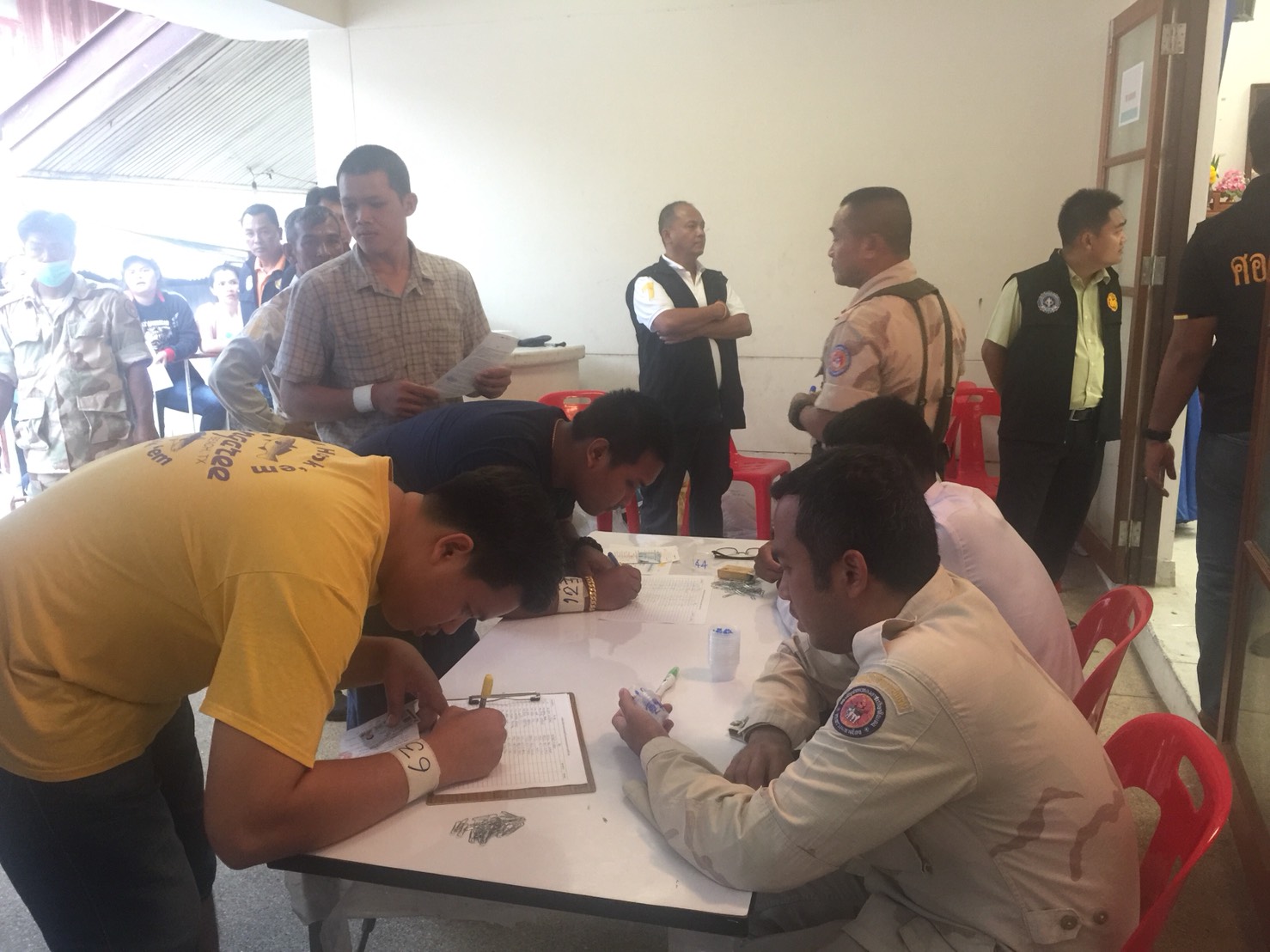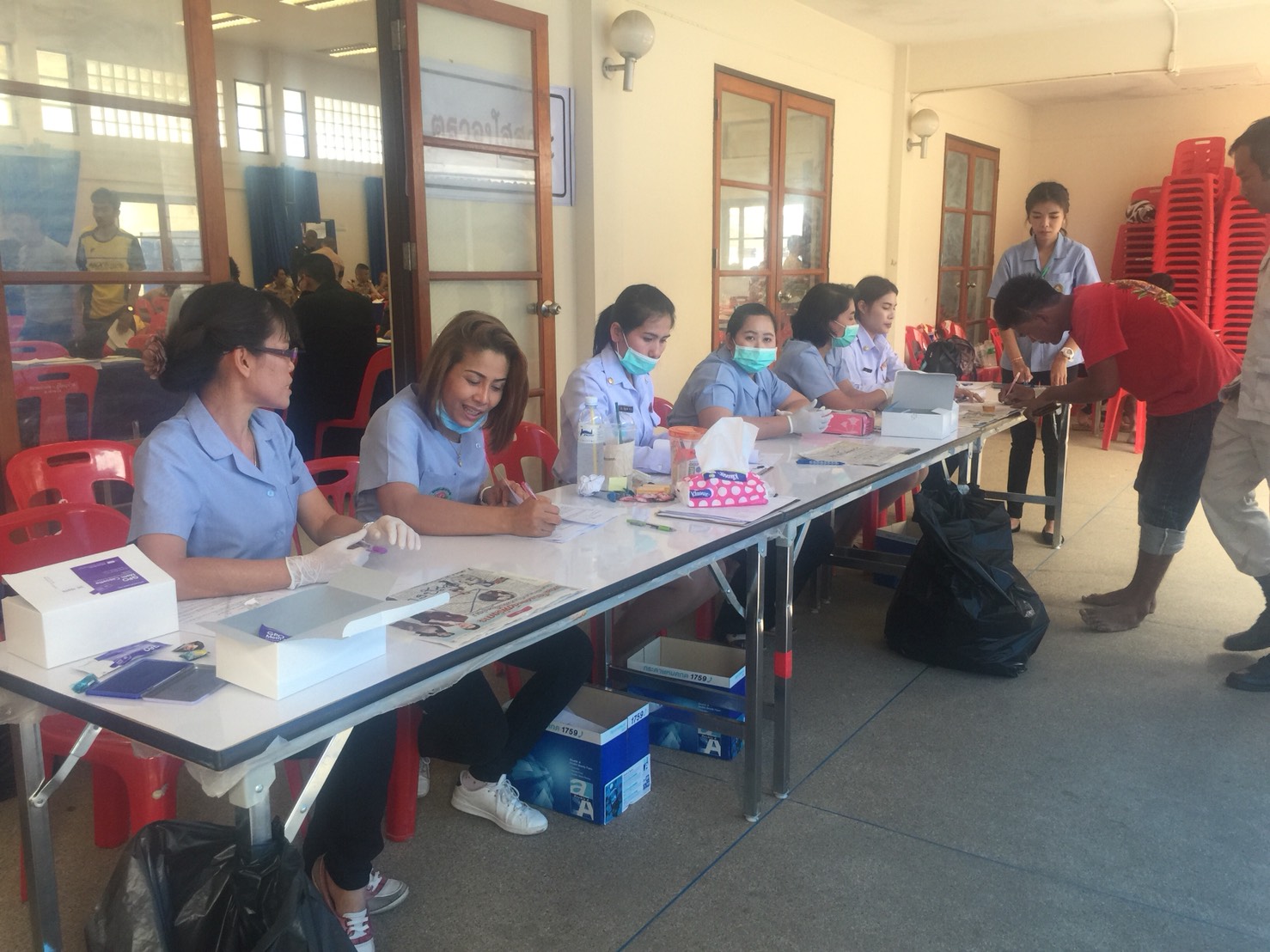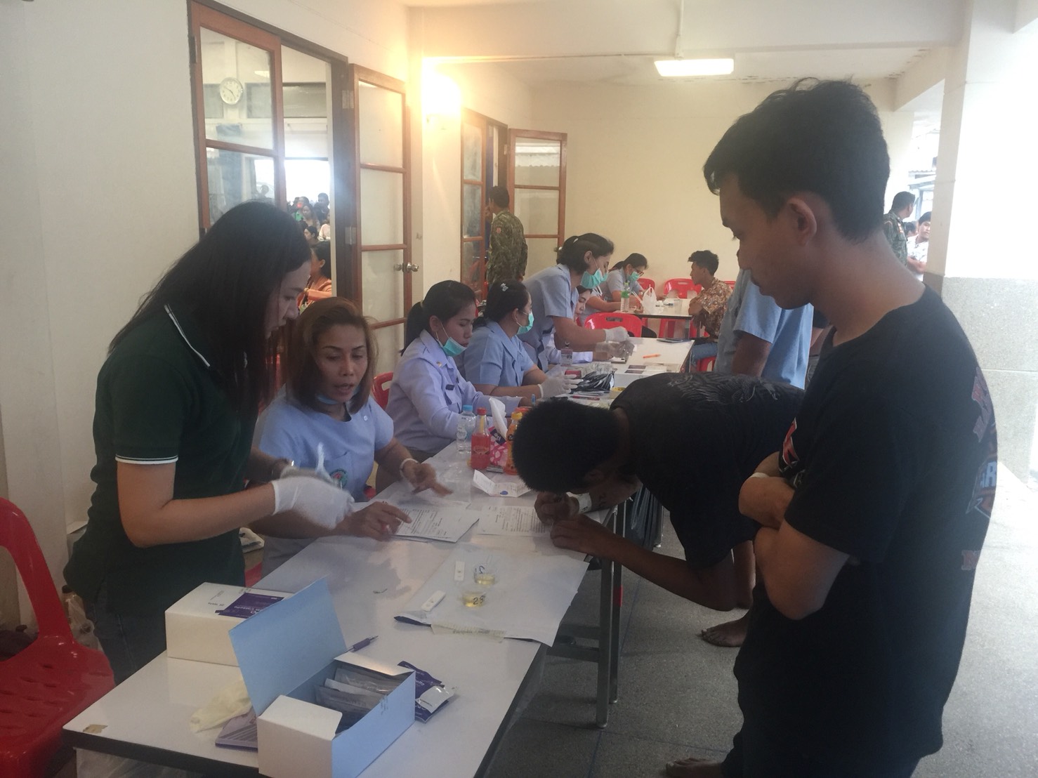 วันที่ 4 เม.ย. 2561 ตั้งแต่เวลา 07.30 น.- 18.30 น. ปปส.ภ.7 มอบหมายให้นายสุพจน์ สมบูรณ์ทรัพย์ นักวิเคราะห์นโยบายและแผนชำนาญการ นางสาวธันยาภรณ์ จีระพงษ์ นักสืบสวนสอบสวนชำนาญการ และนางสาวศิริพร ศรีแก้ว เจ้าหน้าที่วิเคราะห์นโยบายและแผน เข้าร่วมสังเกตุการณ์ และร่วมดำเนินการตรวจปัสสาวะหาสารเสพติดผู้เข้ารับการตรวจเลือกทหารกองเกินเข้ารับราชการทหารกองประจำการประจำปี 2561 ณ หอประชุมอำเภอท่ายาง โดยมีนายอานนท์ พร้อมเพรียง นายอำเภอท่ายาง อำนวยการกำกับดูแล และผู้เข้าร่วมปฏิบัติการประกอบด้วยนายธเนศ นาเมือง ปลัดอำเภอฝ่ายความมั่นคง พร้อมด้วยสมาชิกอส. อำเภอท่ายาง เจ้าหน้าที่สาธารณสุข รพ.ท่ายาง และศอ.ปส.จ.เพชรบุรี จำนวน 50 คน ผลการปฏิบัติงาน มีผู้ที่ต้องตรวจหาสารเสพติด จำนวน 460 ราย พบผู้เสพสารเสพติด รวมทั้งสิ้นจำนวน 31 ราย เจ้าหน้าที่ได้ทำการบันทึกคัดกรองและส่งเข้ารับการบำบัดศูนย์ปรับเปลี่ยนพฤติกรรมจังหวัดเพชรบุรี รุ่นที่4/2561 จำนวน 13 ราย บำบัดรักษาในโรงพยาบาล จำนวน 9 ราย และเป็นผู้ได้รับเลือกเป็นทหารกองเกิน ผลัดที่1 จำนวน 9 ราย