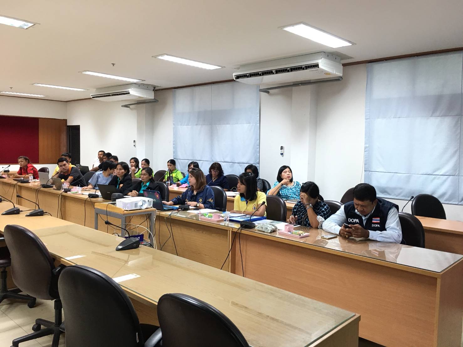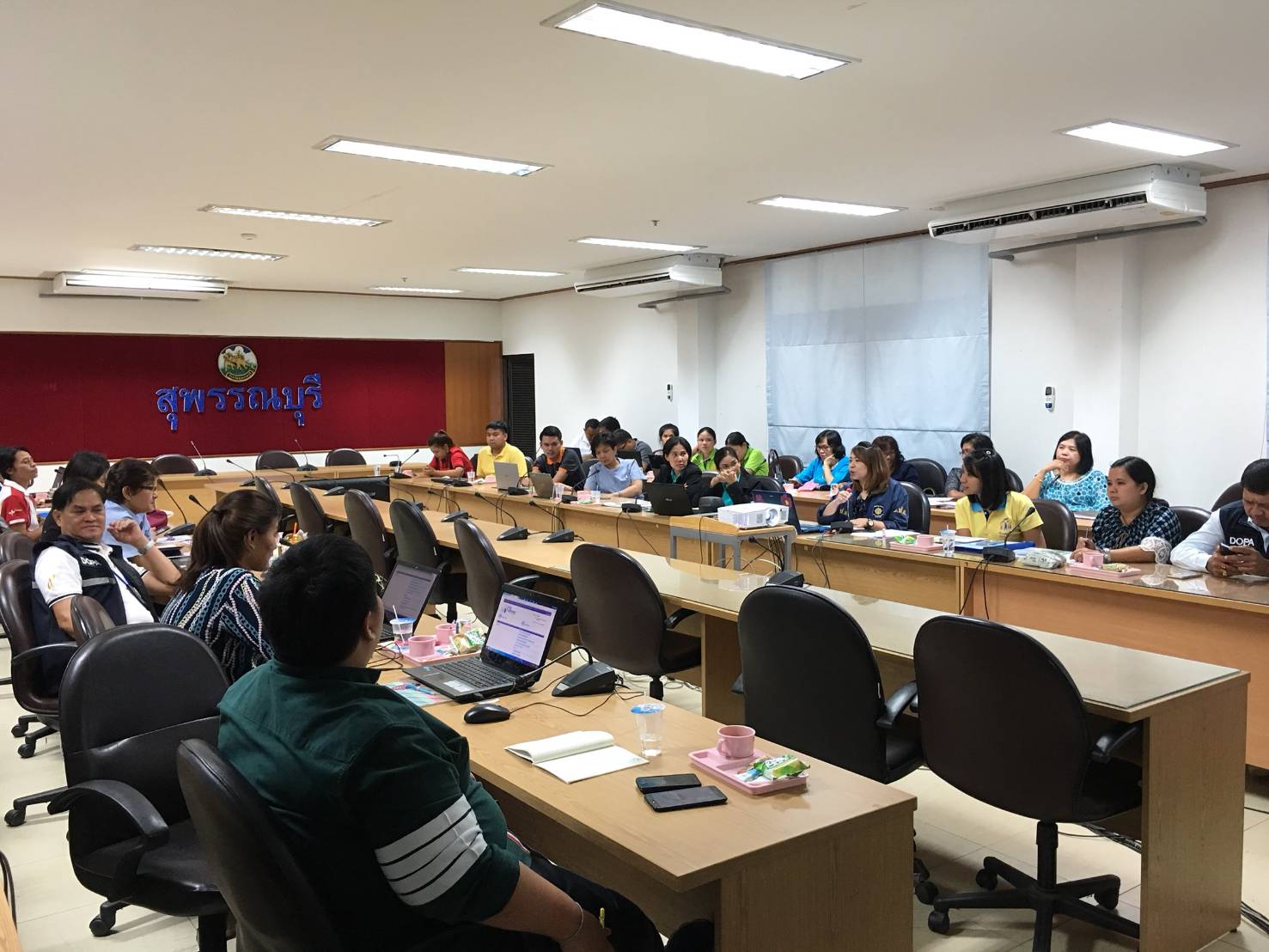 ผู้เข้าร่วมประชุม จำนวนทั้งสิ้นประมาณ 40 คน ประกอบด้วย เจ้าหน้าที่ ศป.ปส.อ และเจ้าหน้าที่บันทึกข้อมูล ศป.ปส.อ. เจ้าหน้าที่ รพ. /สาธารณสุข เรือนจำ และสำนักงานคุมประพฤติ เจ้าหน้าที่จากเขตพื้นที่การศึกษา แรงงาน และสวัสดิการฯ