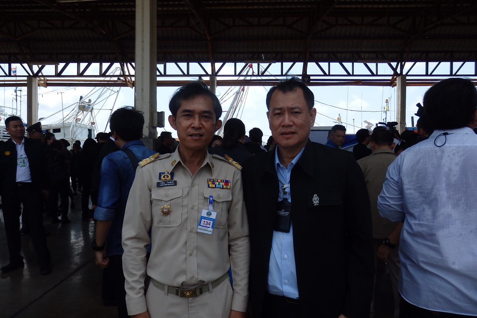 จากนั้นไปเยี่ยมชมองค์การสะพานปลา ตำบลมหาชัย อำเภอเมือง จังหวัดสมุทรสาคร เพื่อรับฟังบรรยายสรุปภาพรวมการดำเนินงานองค์การสะพานปลา และการติดตั้งระบบระบุตำแหน่งเรือประมงไทย พบปะแรงงานต่างด้าว ติดตามการแก้ปัญหาประมงไทย แรงงาน สิ่งแวดล้อม ชูศักยภาพด้านการท่องเที่ยว โดยประเด็นสำคัญคือการติดตามการแก้ไขปัญหาการทำประมงผิดกฎหมาย และการบริหารจัดการแรงงานต่างด้าว