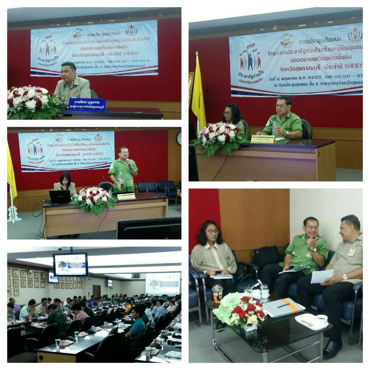 วันที่ 4 พฤษภาคม 2559 เวลา 09.00 น. ผู้แทน ปปส.ภาค 7 นำโดย นายพิสุทธิ์ เจริญฤทธิ์ ผู้เชี่ยวชาญด้านการป้องกันและปราบปรามยาเสพติด นางวรรณภา แก้วอยู่ นักวิเคราะห์นโยบายและแผนชำนาญการพิเศษ และนางสาวสายสมร รอดแก้ว นักวิเคราะห์ชำนาญการ เข้าร่วมประชุมเชิงปฏิบัติการชุดปฏิบัติการประจำตำบล (ครู ข) ตามแผนประชารัฐร่วมใจสร้างหมู่บ้านชุมชนมั่นคง ปลอดภัยยาเสพติด พ.ศ. 2559 - 2560 ณ ห้องประชุมอาคารศาลากลางจังหวัดสุพรรณบุรี โดยมี นายพิภพ บุญธรรม รองผู้ว่าราชการจังหวัดสุพรรณบุรี เป็นประธานเปิดการอบรมและมอบนโยบาย ผู้เข้าร่วมการอบรมประกอบด้วย ชุดปฏิบัติการประจำตำบล จำนวน 10 อำเภอ และผู้นำหมู่บ้าน/ชุมชน จำนวน 60 หมู่บ้าน/ชุมชน เป้าหมาย ตามแผนประชารัฐฯ ตลอดจน ข้าราชการ และเจ้าหน้าที่ผู้ปฏิบัติงานจากหน่วยงานที่เกี่ยวข้อง รวมจำนวนทั้งสิ้น 150 คน ทั้งนี้การอบรมดังกล่าว มีนายพิสุทธิ์ เจริญฤทธิ์ ผู้เชี่ยวชาญด้านการป้องกันและปราบปรามยาเสพติด เป็นวิทยากรบรรยายให้ความรู้แนวทางการขับเคลื่อนแผนประชารัฐร่วมใจ สร้างหมู่บ้าน/ชุมชนมั่นคง ปลอดภัยยาเสพติด พ.ศ. 2559-2560 ให้กับผู้เข้ารับการอบรมทราบและนำไปเป็นแนวทางในการขับเคื่อนการดำเนินงานในพื้นที่หมู่บ้าน/ชุมชน ต่อไป