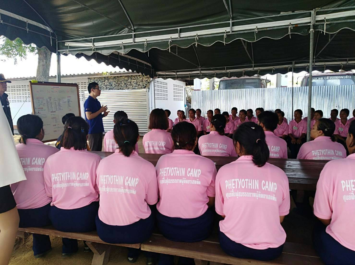 เมื่อวันที่ ๒๔ เมษายน ๒๕๖๑ ผู้แทน ปปส.ภ.๗ โดยนายจิรพงศ์ วางวงศ์ นักวิเคราะห์นโยบายและแผนชำนาญการ และนางสาวสายสมร รอดแก้ว นักวิเคราะห์นโยบายและแผนชำนาญการ ลงพื้นที่ตรวจเยี่ยมการดำเนินงานบำบัดฟื้นฟูสมรรถภาพผู้ติดยาเสพติดในระบบบังคับบำบัด (หญิง) ณ ศูนย์ฟื้นฟูสมรรถภาพผู้ติดยาเสพติดกองร้อยปฏิบัติการฝึกที่ ๒ กองบัญชาการกองร้อยอาสารักษาดินแดน ค่ายเพชรโยธิน อำเภอชะอำ จังหวัดเพชรบุรี เพื่อติดตามการดำเนินงานบำบัดฟื้นฟูฯ ผู้ติดยาเสพติดในระบบบังคับบำบัดหญิงในพื้นที่ภาค ๗ โดยศูนย์ฟื้นฟูฯ ได้รับงบประมาณดำเนินงานจากกรมคุมประพฤติในการฟื้นฟูฯ ผู้ติดในปีงบประมาณ ๒๕๖๑ จำนวน ๑๐๐ ราย ปัจจุบันมีผู้เข้าฟื้นฟูฯ จำนวน ๕๘ คน ดำเนินการฟื้นฟูฯ ตามหลักสูตรแกนกลางรูปแบบชุมชนบำบัดและ FAST MODEL ซึ่งปรับไปตามบริบทศักยภาพของสถานที่และกำลังเจ้าหน้าที่ของศูนย์ฟื้นฟูฯ อยู่ในการกำกับดูแลของกรมการปกครอง กระทรวงมหาดไทย