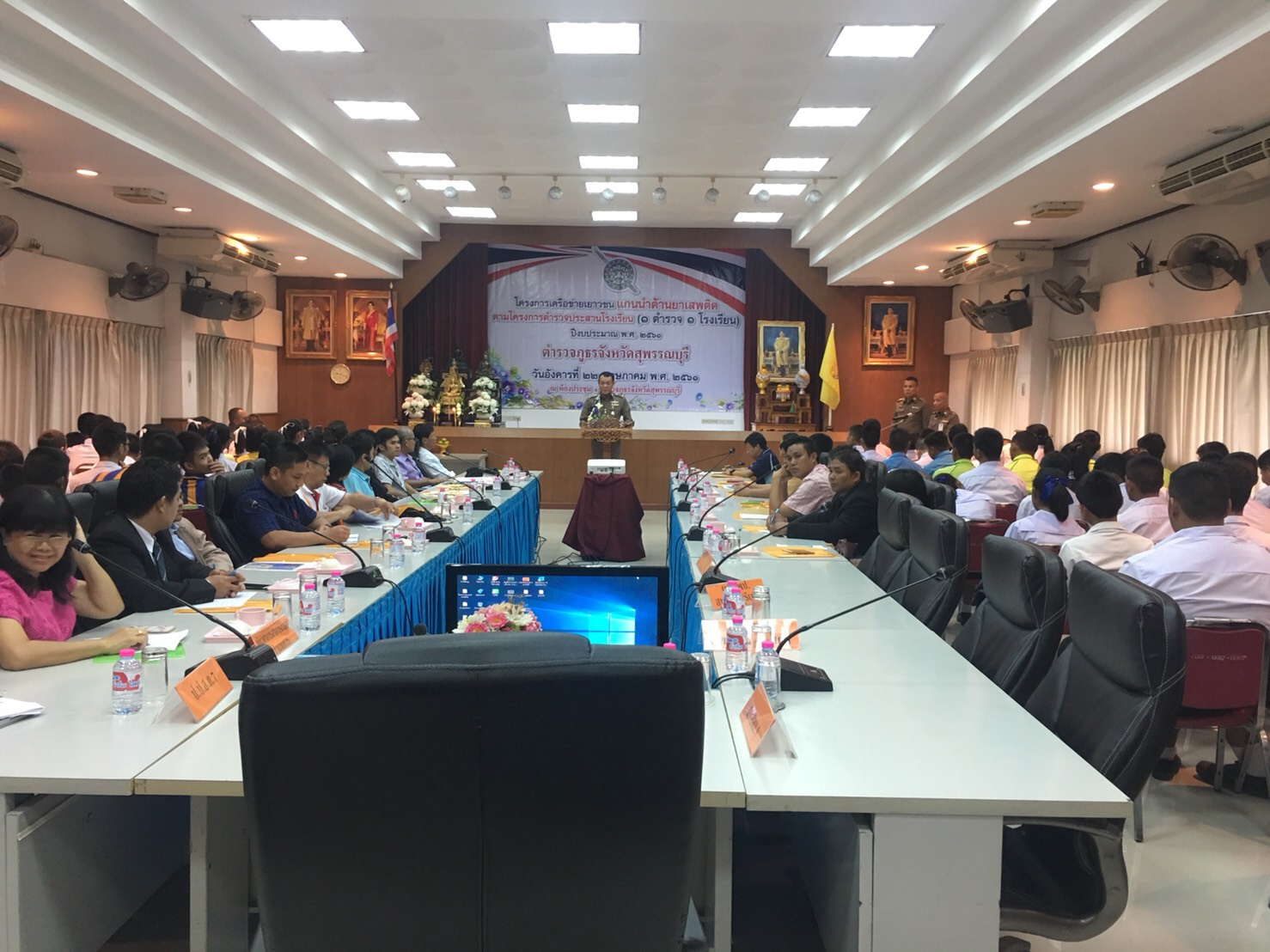 โดยมี พ.ต.อ.อภิชิต สุรพินิจ รอง ผบก.ภ.จว.สุพรรณบุรี เป็นประธานในพิธีเปิด ในครั้งนี้ กลุ่มเป้าหมายประกอบด้วย ผู้แทนเขตพื้นที่การศึกษามัธยมศึกษา เขต 9 ผู้แทนเขตพื้นที่การศึกษาประถมศึกษาสุพรรณบุรี เขต 1 , 2 , 3 ตำรวจประสานโรงเรียน และ เยาวชนแกนนำต้านยาเสพติด รวมจำนวนผู้เข้าร่วมโครงการทั้งสิ้น 200 คน