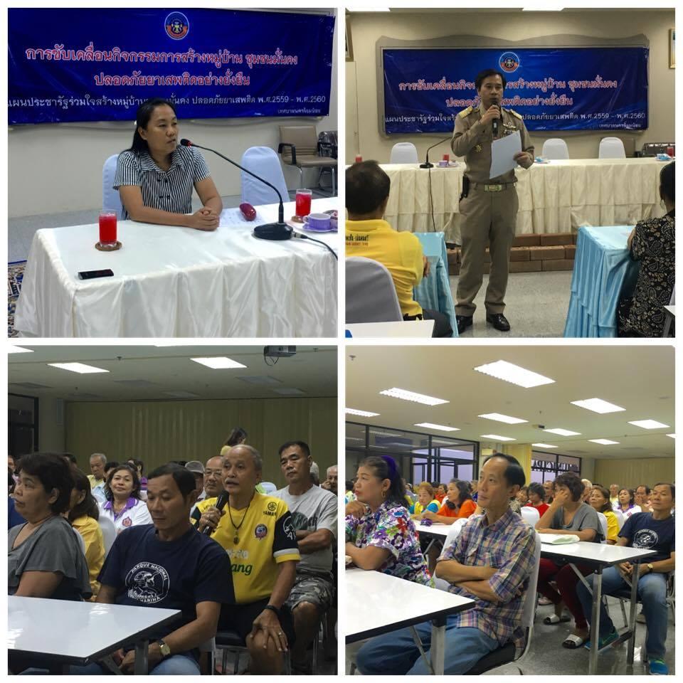 เมื่อวันที่ 16 พฤษภาคม 2559 เวลา 18.30 น. นางจิตติมา บุญเก็บทอง ผู้อำนวยการส่วนวิเคาระห์ข่าวและเฝ้าระวัง ผู้แทน ปปส.ภาค 7 พร้อมด้วยชุดปฏิบัติการตำบลอ้อมน้อย อำเภอกระทุ่มแบน จังหวัดสมุทรสาคร นำโดยนายบรรพต จันทรวงษ์ ปลัดอำเภอ (จพง.ปค.ชำนาญการพิเศษ) และคณะ ลงพื้นที่ในเขตเทศบาลนครอ้อมน้อย จำนวน 4 ชุมชน ได้แก่ ชุมชนเพชรเกษมธานี ชุมชนหนองบัว ชุมชนบ้านแถว และชุมชนโรงหมู่ ซึ่งเป็นหมู่บ้านเป้าหมายนำร่อง ตามแผนประชารัฐร่วมใจฯ สร้างหมู่บ้านชุมชนมั่งคง ปลอดภัยยาเสพติด พ.ศ.2559-2560 จังหวัดสมุทรสาคร เพื่อสืบสภาพชุมชน และพบปะแกนนำ/ผู้นำธรรมชาติ โดยได้รวบรวมข้อมูลที่สำคัญของหมู่บ้าน ปัญหาต่างๆ ของชุมชน และพบปะผู้นำ เพื่อชี้แจงทำความเข้าใจแนวทางการดำเนินงานชุมชนเข้มแข็ง บทบาทหน้าที่ของผู้นำทางการ และผู้นำธรรมชาติ ซึ่งชุดปฏิบัติการตำบลจะได้นำข้อมูลมาศึกษา วิเคราะห์และดำเนินงานในขั้นต่อไป