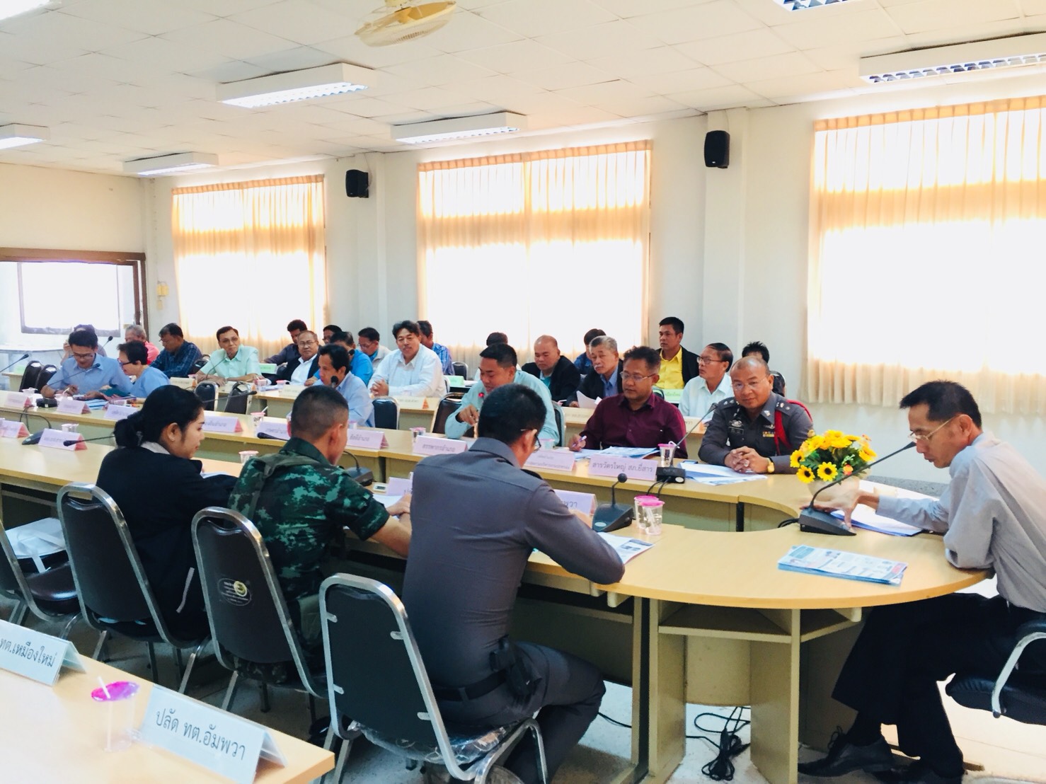 วันที่ 3 มกราคม 2561 เวลา 09.30 น. สำนักงาน ปปส.ภ.7 มอบหมายให้ นางสาวโสฬส ทองบ้านบ่อ นักสืบสวนสอบสวนปฏิบัติการ และนางสาวนยาวิ อินทรา เจ้าหน้าที่วิเคราะห์นโยบายและแผน เข้าร่วมประชุมคณะกรรมการความมั่นคงและความสงบเรียบร้อย และคณะกรรมการศูนย์อำนวยการป้องกันและปราบปรามยาเสพติดอำเภออัมพวา ครั้งที่ 1/2561 ณ ห้องประชุมอำเภออัมพวา ชั้น 2 จังหวัดสมุทรสงคราม โดยมีนายสุคนธ์ สุวรรณศักดิ์สิน นายอำเภออัมพวา เป็นประธาน มีผู้เข้าร่วมประชุม จำนวน 38 คน ทั้งนี้ ผู้แทน ปปส.ภ. 7 ได้นำเสนอและขอความร่วมมือในที่ประชุม ดังนี้