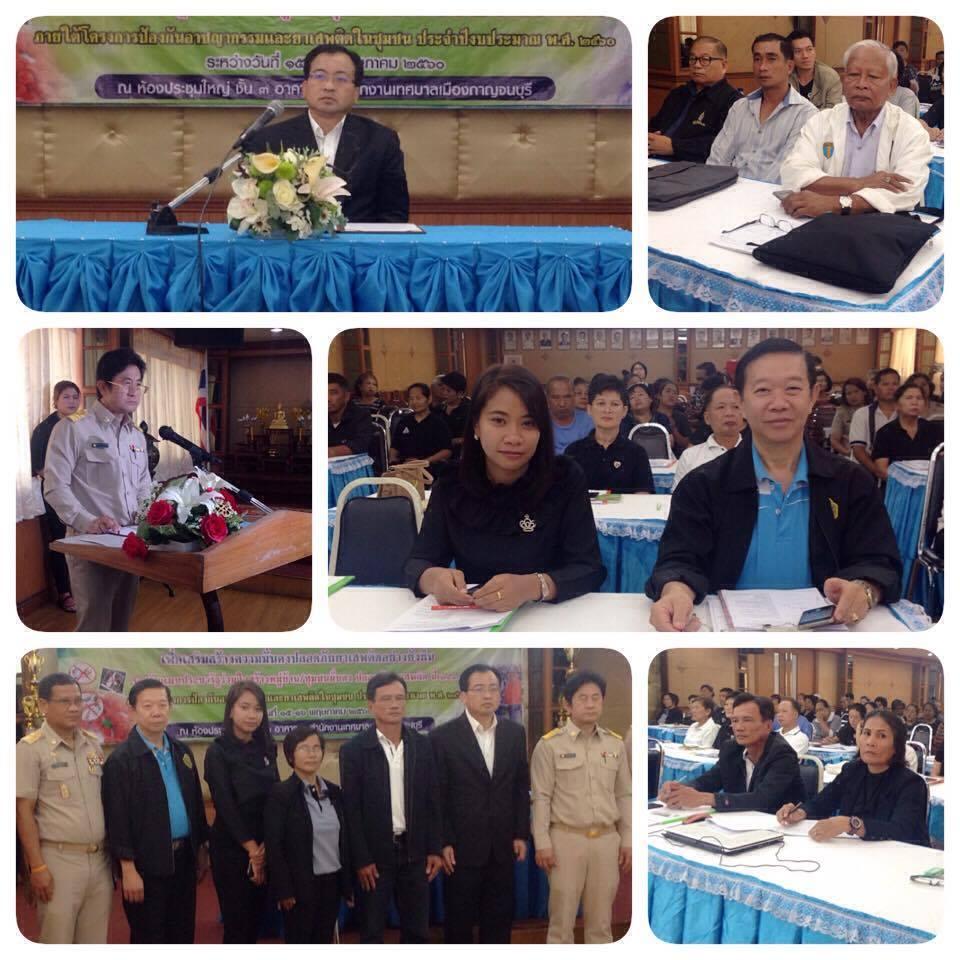 วันที่ 15 พฤษภาคม 2560 เวลา 09.00 น. นางสาวสายสมร รอดแก้ว นักวิเคราะห์นโยบายและแผนชำนาญการ และนางสาวศิริพร ศรีแก้ว เจ้าหน้าที่วิเคราะห์นโยบายและแผน ผู้แทนสำนักงาน ปปส.ภาค 7 เข้าร่วมพิธีเปิดและร่วมสังเกตการณ์การประชุมเชิงปฏิบัติการพัฒนาศักยภาพแกนนำชุมชนในเขตเทศบาลเมืองกาญจนบุรี เพื่อเสริมสร้างความมั่นคงปลอดภัยยาเสพติดอย่างยั่งยืน รองรับแผนประชารัฐร่วมใจสร้างหมู่บ้าน/ชุมชนมั่นคง ปลอดภัยยาเสพติด ปี 2560 ภายใต้โครงการป้องกันอาชญากรรมและยาเสพติดในชุมชนเทศบาล ประจำปีงบประมาณ พ.ศ.2560