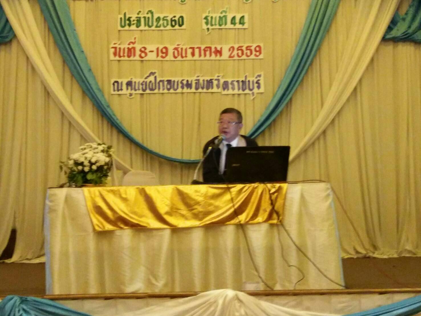 นายวรเชษฐ์ สัจจาลักษณ์ ผอ.บก.ปปส.ภาค 7 บรรยายหัวข้อ "สถานการณ์ยาเสพติดและความรู้เบื้องต้นเกี่ยวกับยาเสพติด" ให้แก่ผู้เข้ารับการฝึกอบรมโครงการฝึกอบรมหลักสูตรกำนัน ผู้ใหญ่บ้าน ประจำปี 2560 รุ่นที่ 44