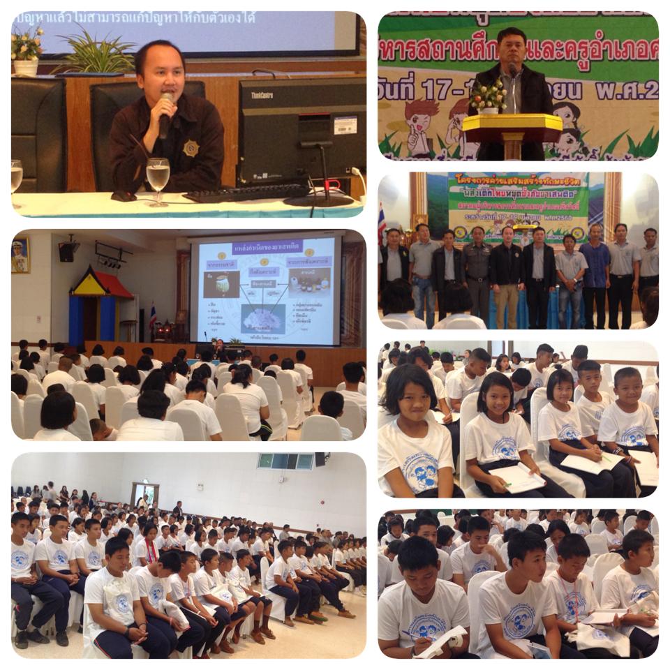 วันที่ 17 เมษายน 2560 เวลา 9.00 น. ผู้แทน สนง.ปปส.ภาค 7 นายศุภวัฒน์ แสงแก่ นักวิเคราะห์นโยบายและเเผนชำนาญการ และคณะ เข้าร่วมพิธีเปิดโครงการค่ายเสริมสร้างทักษะชีวิต "พลังเด็กไทยหยุดยั้งภัยยาเสพติด" และได้ร่วมเป็นวิทยากรบรรยายให้ความรู้เกี่ยวกับสารเสพติดและการป้องกันยาเสพติดให้กับนักเรียนที่เข้าร่วมโครงการในครั้งนี้ ซึ่งกำหนดการจัดโครงการจัดขึ้นระหว่างวันที่ 17-19 เมษายน 2560 ณ หอประชุมเคียงธารา เขื่อนศรีนครินทร์ อำเภอศรีสวัสดิ์ จังหวัดกาญจนบุรี โดยมีวัตุประสงค์เพื่อให้นักเรียนมีความรู้ความเข้าใจเกี่ยวกับเรื่องสารเสพติด ตะหนักถึงโทษและพิษภัยยาเสพติด มีทักษะในการป้องกันตนเองให้ห่างไกลจากยาเสพติด พร้อมทั้งร่วมกันสร้างภูมิคุ้มกันในการป้องกันและแก้ไขปัญหายาเสพติดในสถานศึกษา และเพื่อพัฒนาทักษะชีวิตให้นักเรียนมีกระบวนการคิดที่ดี สามารถแก้ปัญหาและตัดสินใจได้ถูกต้อง ประสบความสำเร็จทั้งในด้านการเรียน การปรับตัวอยู่ในสังคมได้อย่างปลอดภัยและมีความสุข