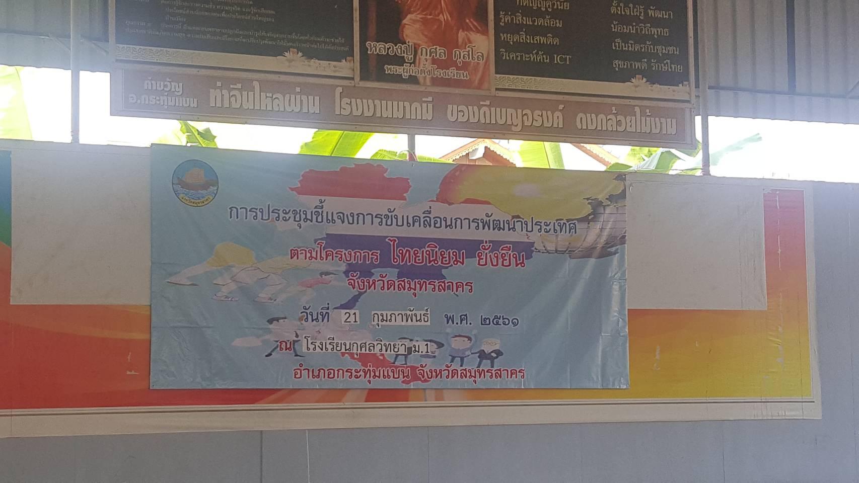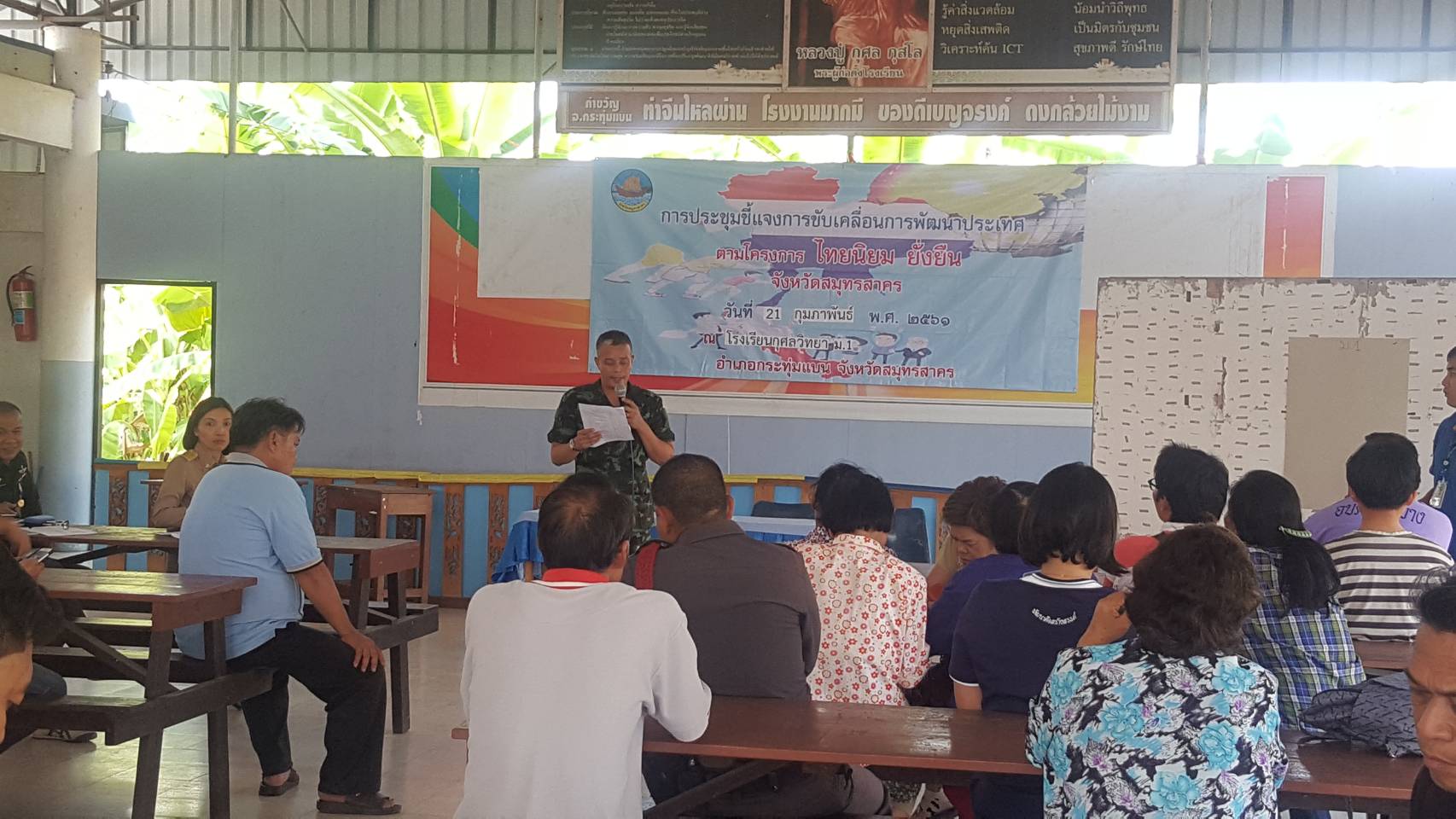 วันที่ 21 กุมภาพันธ์ 2561 เวลา 16.00 น. ผู้แทน ปปส.ภ. 7 เข้าร่วมสังเกตการณ์การประชุมประชาคมตามโครงการไทยนิยม ยั่งยืน อำเภอกระทุ่มแบน จังหวัดสมุทรสาคร ครั้งที่ 1 ณ อาคารเอนกประสงค์ โรงเรียนกุศลวิทยา หมู่ 1 ตำบลบางยาง อำเภอกระทุ่มแบน จังหวัดสมุทรสาคร โดยมีชุดปฎิบัติการขับเคลื่อนการพัฒนาประเทศไทยตามโครงการไทยนิยม ยั่งยืน ระดับตำบล นำโดยนางยุพยงค์ สนธิ หัวหน้าชุด ชี้แจงนโยบายวัตถุประสงค์ และรายละเอียดโครงการฯ พร้อมสำรวจความต้องการและรับฟังปัญหาความเดือดร้อนในด้านต่างๆ ของประชาชน จากนั้นจะรวบรวมข้อมูลต่างๆมาวิเคราะห์เพื่อหาแนวทางในการพัฒนาคุณภาพชีวิตต่อไป