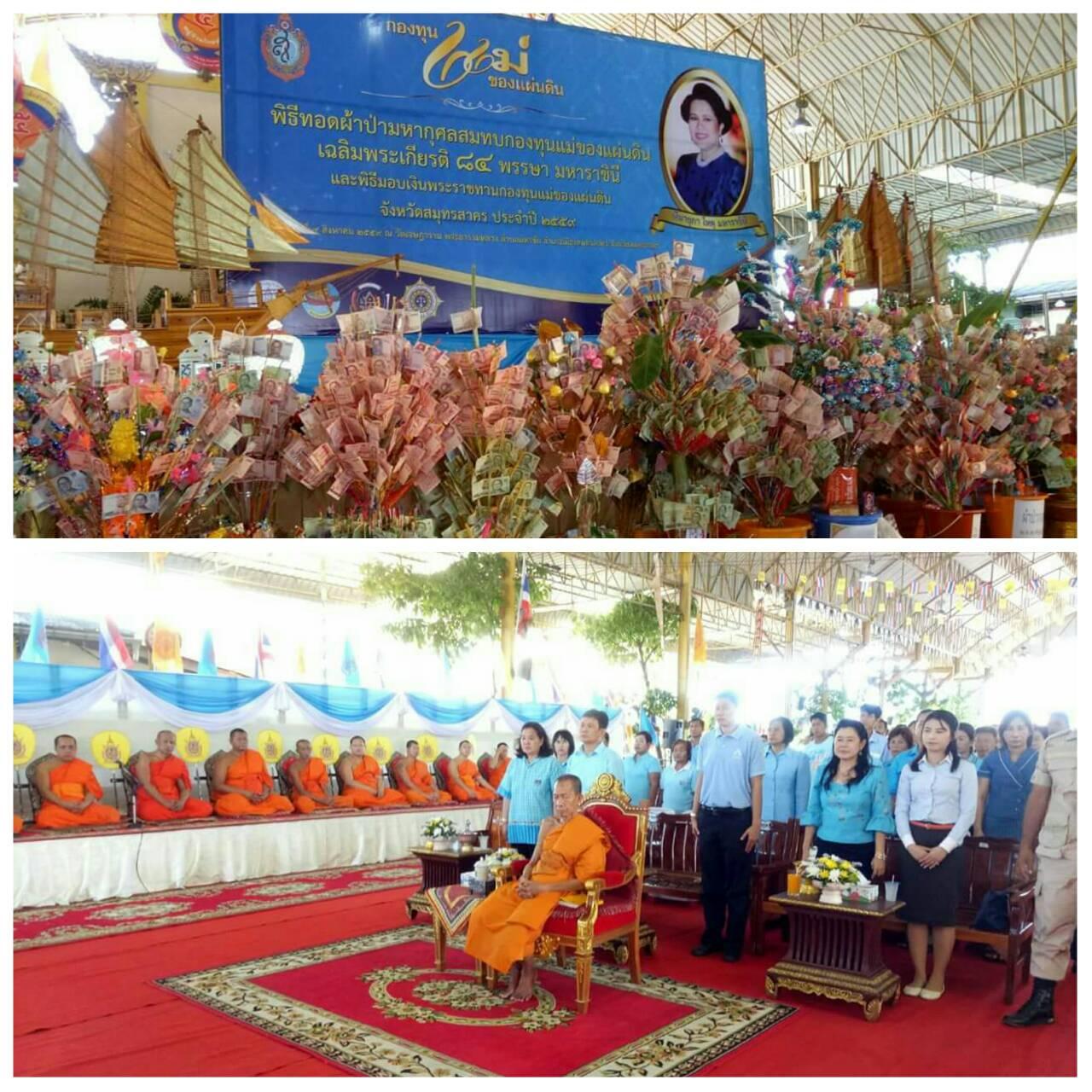 ผู้แทน ปปส.ภาค 7 เข้าร่วมเป็นเกียรติในพิธีทอดผ้าป่ามหากุศลสบทบทุนกองทุนแม่ของแผ่นดินเฉลิมพระเกียรติ 84 พรรษามหาราชินีและพิธีมอบเงินพระราชทานกองทุนแม่ของแผ่นดิน จังหวัดสมุทรสาคร