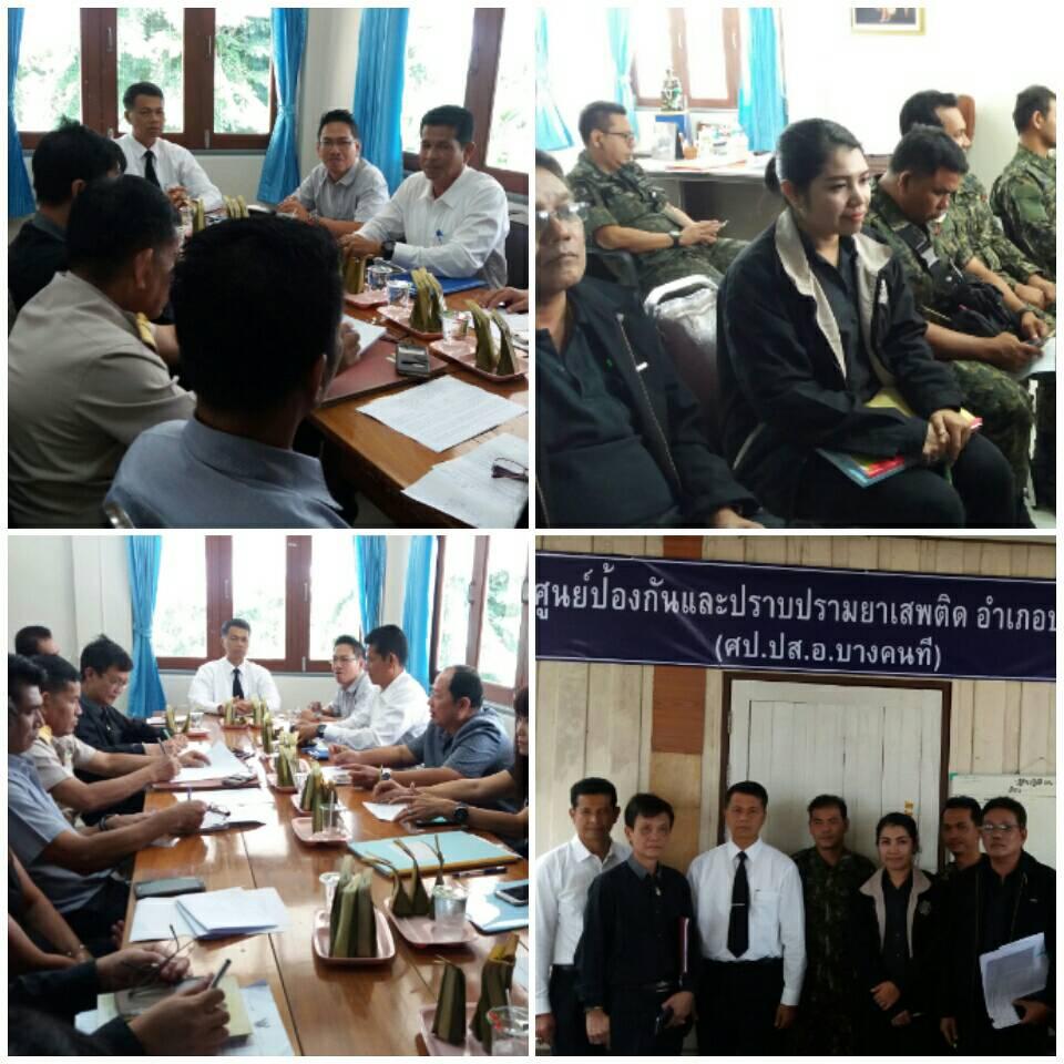 วันที่ 16 สิงหาคม 2560 เวลา 10.30 น. ปปส.ภ.7 มอบหมายให้ นางสาวโสฬส ทองบ้านบ่อ นักสืบสวนสอบสวนปฏิบัติการ เข้าร่วมประชุมคณะอนุกรรมการกำกับติดตามผลการดำเนินงานป้องกันและแก้ไขปัญหายาเสพติดจังหวัดสมุทรสงคราม โดยมีนายสมนึก พรหมเขียว ปลัดจังหวัดสมุทรสงคราม ทำหน้าที่เป็นประธาน นำคณะลงพื้นที่อำเภอบางคนที เพื่อขับเคลื่อนการดำเนินงานตามแผนประชารัฐฯ ในระดับพื้นที่อำเภอ และเพื่อเร่งรัดติดตามผลการดำเนินงานให้ได้ตามเป้าหมายอย่างมีประสิทธิภาพ พร้อมรับฟังปัญหาอุปสรรคเพื่อร่วมกันหาแนวทางแก้ไข โดยมีคณะอนุกรรมการฯ และผู้แทนจากหน่วยงานในพื้นที่ รวมจำนวน 43 คน